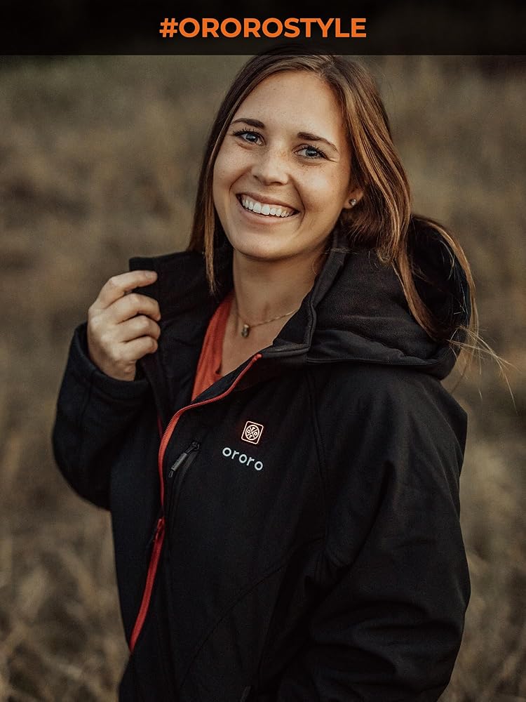 Bundle Includes: One Women's 4-Zone Heated Jacket (Black, L) with battery + One Heated Scarf (Grey) with battery