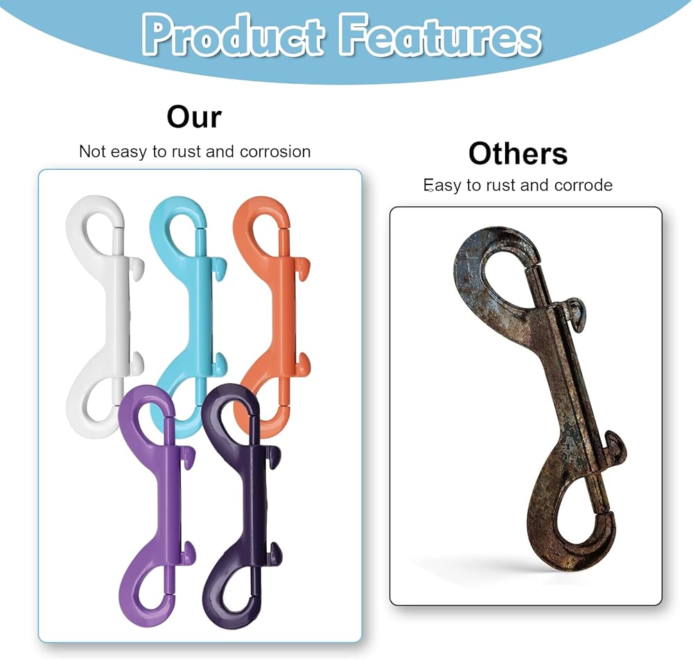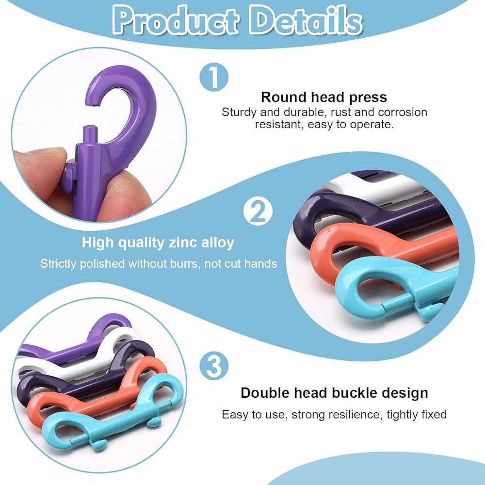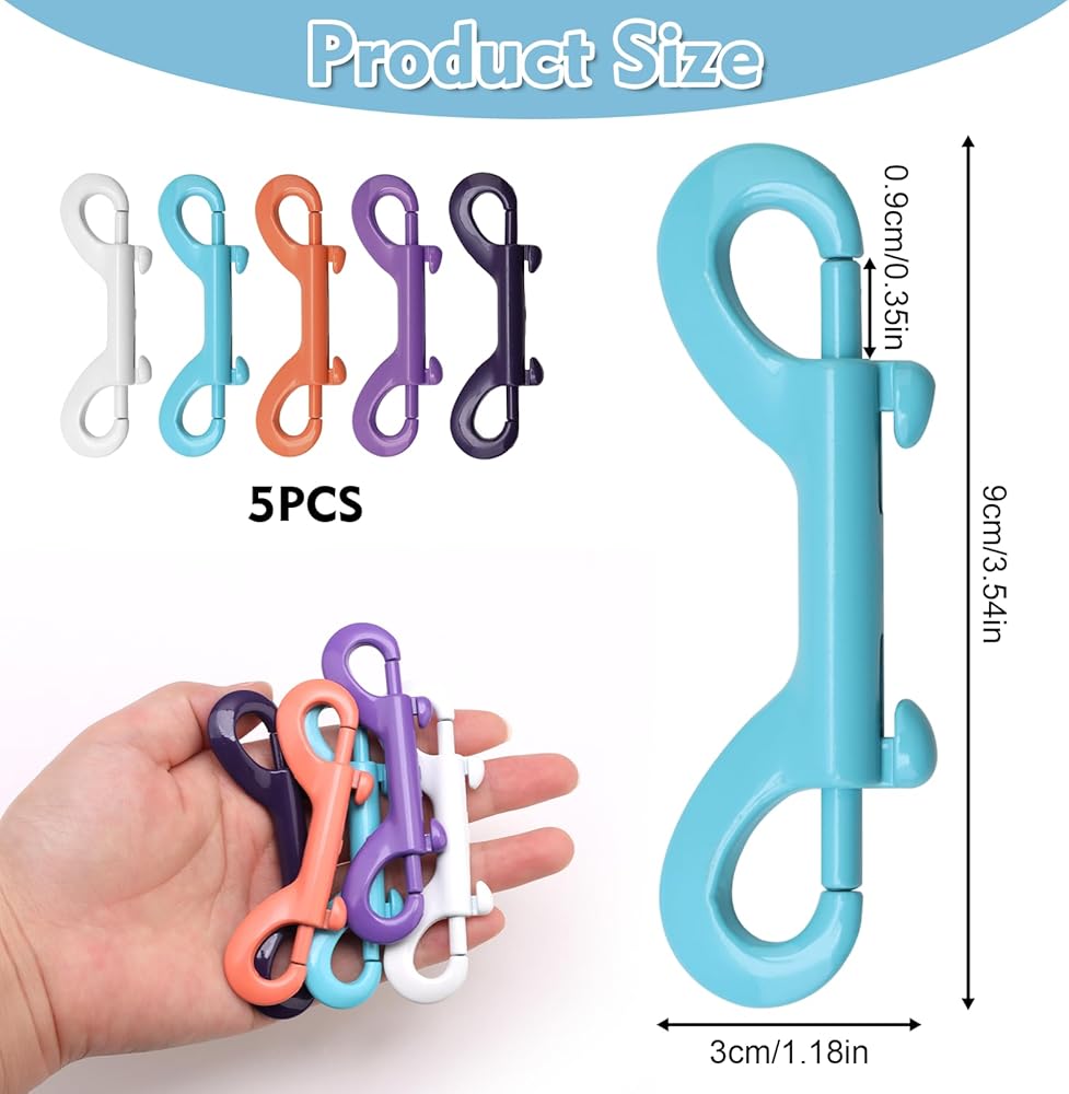 Introducing our 5 Pcs Double Ended Bolt Snap Hooks, the accessory for your everyday needs. These versatile hooks are designed with convenience and durability in mind. Made from high-quality zinc alloy, they are built to withstand heavy-duty usage.Featuring double-sided clips, these snap hooks provide you with double the functionality. Attach them to dog leashes, hammocks, water bucket hooks, or use them as key holders - the possibilities are endless. The colorful finish adds a touch of elegance to any item they are attached to. The double-ended design ensures a secure grip, providing peace of mind knowing that your belongings are safely fastened.These double-ended snap hooks are easy to use and offer reliable performance. Whether you're hiking, camping, or simply organizing your belongings, these hooks will come in handy. Their sturdy construction ensures long-lasting durability, making them a reliable companion for all your adventures.