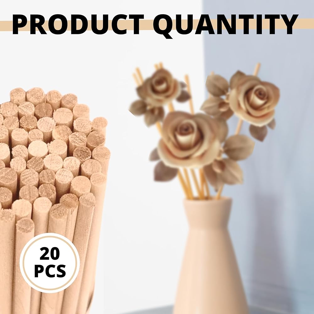 Our 40 pcs wooden dowels 12 inch, 1/4 wooden dowel rod is all you need for ideal DIY projects. They are round, strong and very tough to break. The sticks are the perfect size for the base of your projects.