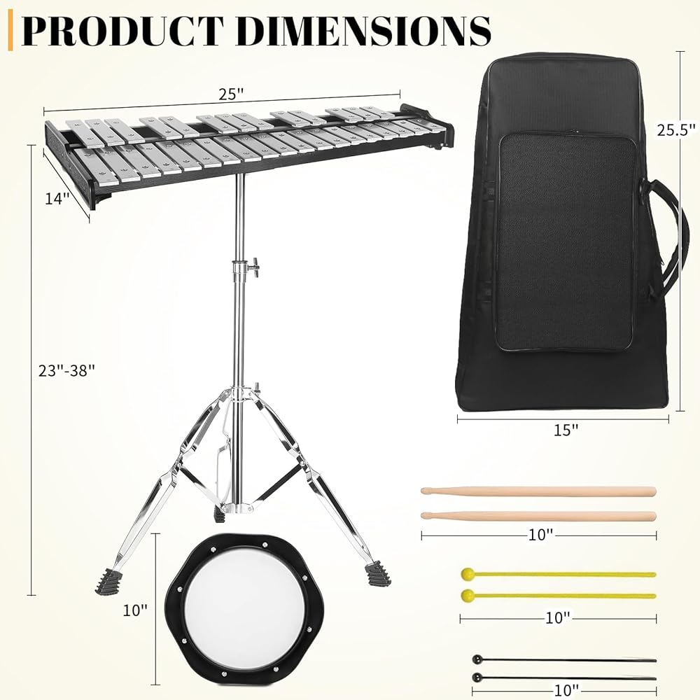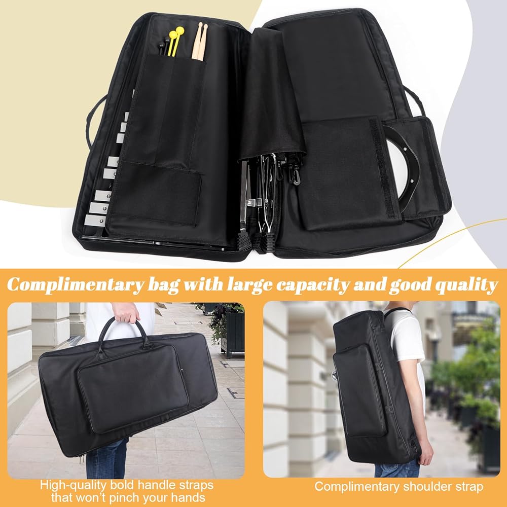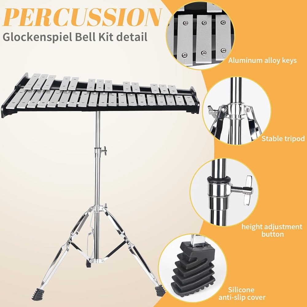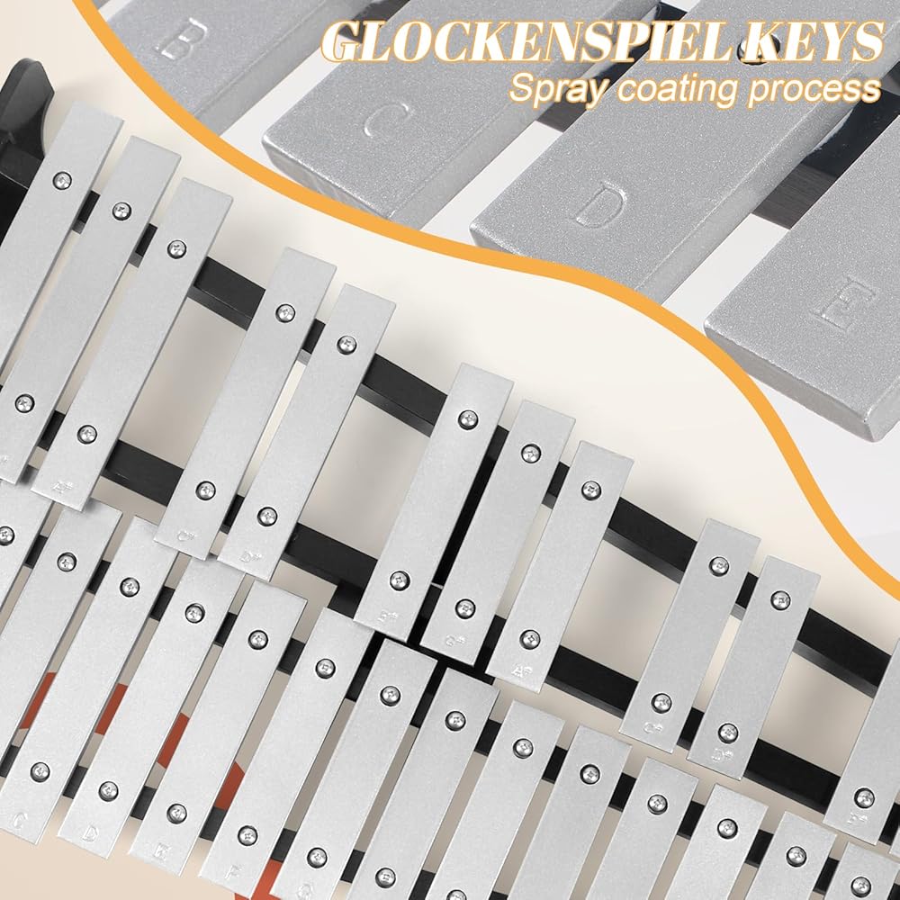【 32 نوتة إكسيليفون Glockenspiel 】 إكسيليفون شامل 32 نوتة، تم ضبطه وتمييزه باحترافية، مع قضبان ألومنيوم عالية الجودة ونطق قياسي، مناسب للمبتدئين. لا يتطلب الصفان جرسًا صوتيًا، مما يوفر نطاقًا غنيًا من النغمات، مناسب لك لتذكر أقسام جرس الصوت المختلفة.