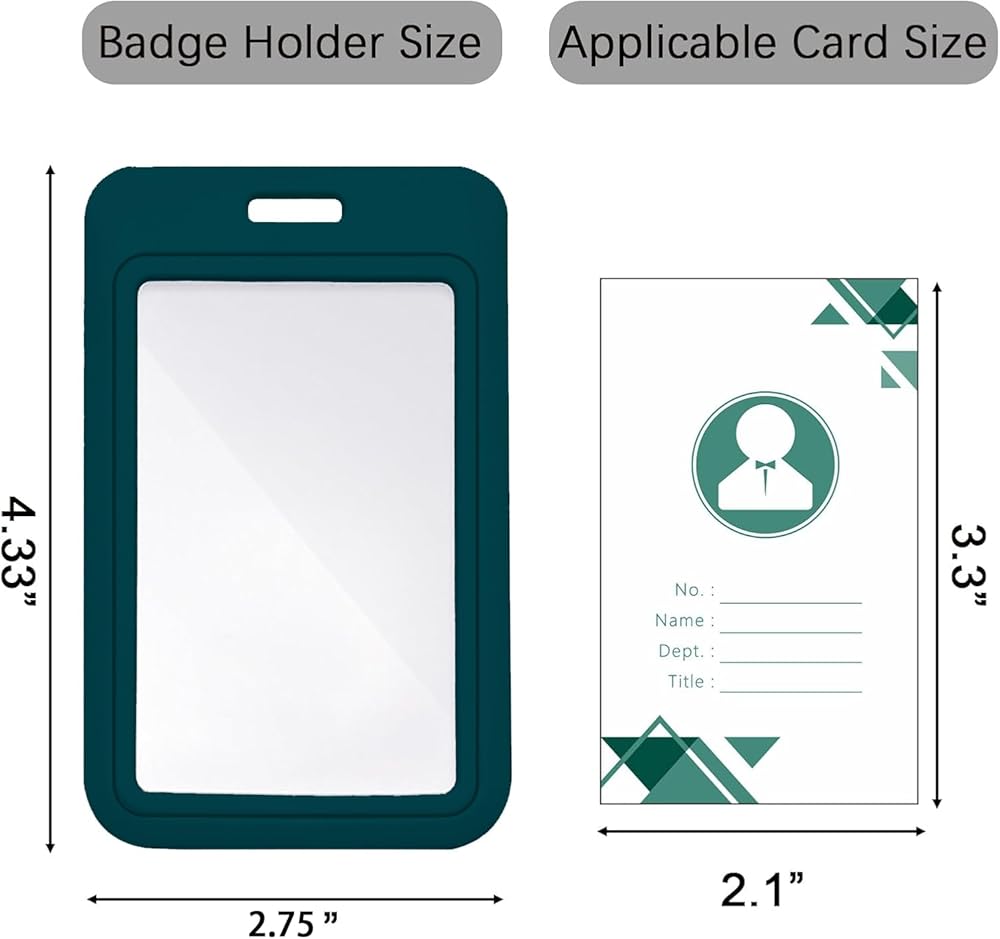 • 4 Pack ID Badge Holder: 4.33 Inch x 2.75 Inch. Inner size: L 3.35 Inch x W 2.15 Inch. Suitable for 2 standard-sized cards like credit cards, ID cards, access cards.