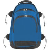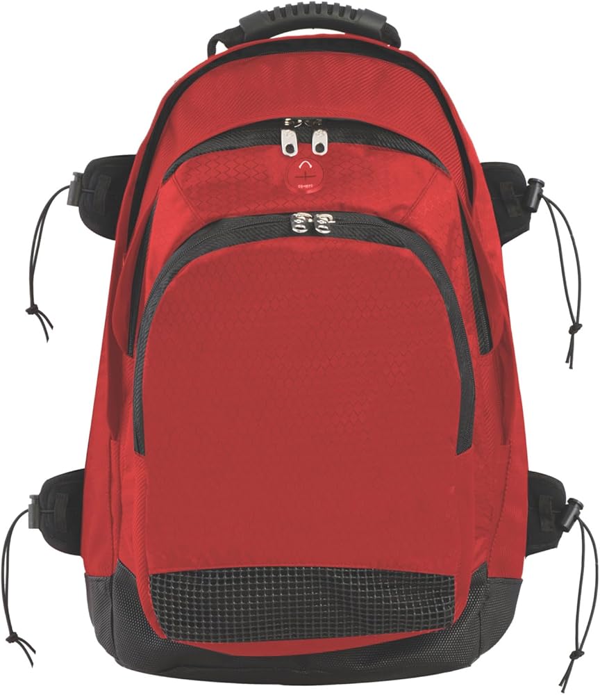 The Champion Sports Deluxe Sports Backpack prioritizes both comfort and functionality. The ultra-durable 600 Denier nylon construction can withstand daily wear and tear, while the adjustable shoulder and waist straps with padding on the back and shoulders ensure a comfortable carry. Two large compartments offer ample space for books and equipment, and the ventilated front pocket keeps sweaty clothes or shoes separate. Stash smaller items in the convenient side zippered pockets, or utilize the dedicated media pocket for easy access to your headphones or phone. Oversized zippers make opening and closing a breeze, and the padded cord lock holders can secure two lacrosse sticks or bats for hands-free carrying. Measuring 20"L x 13"W x 10"H, this versatile backpack is a great choice for any active student. Available in Red, Green, Blue, Navy or Black.