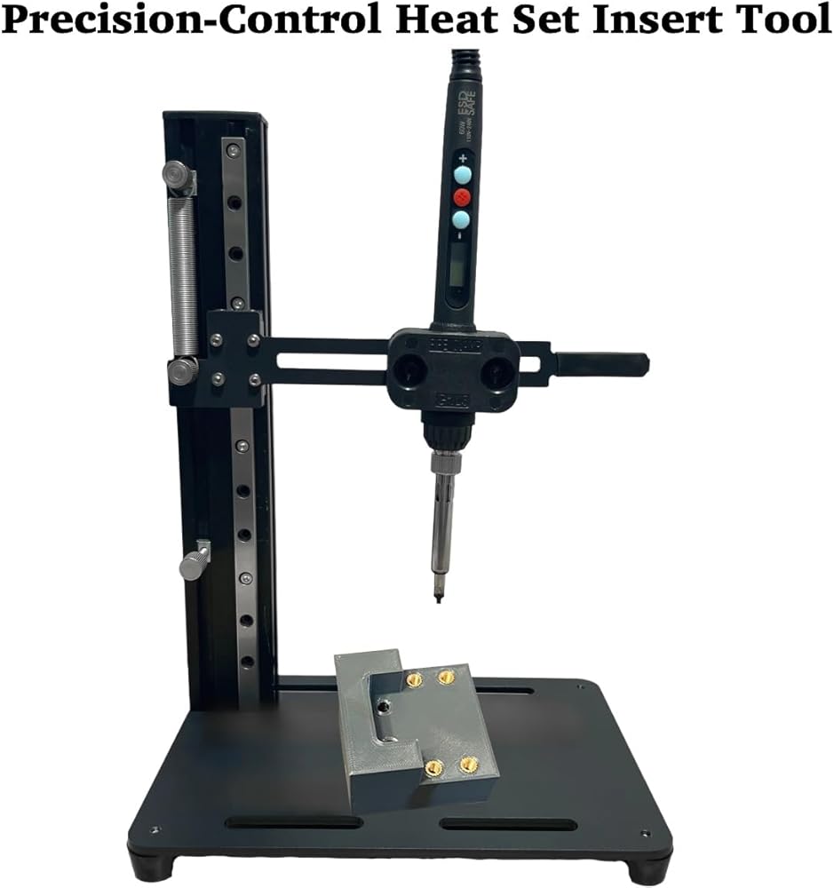 • Durable Construction: Heat set insert tool built with a solid all-metal frame and a thickened steel base in a vertical press design, ensuring durability and stability during use