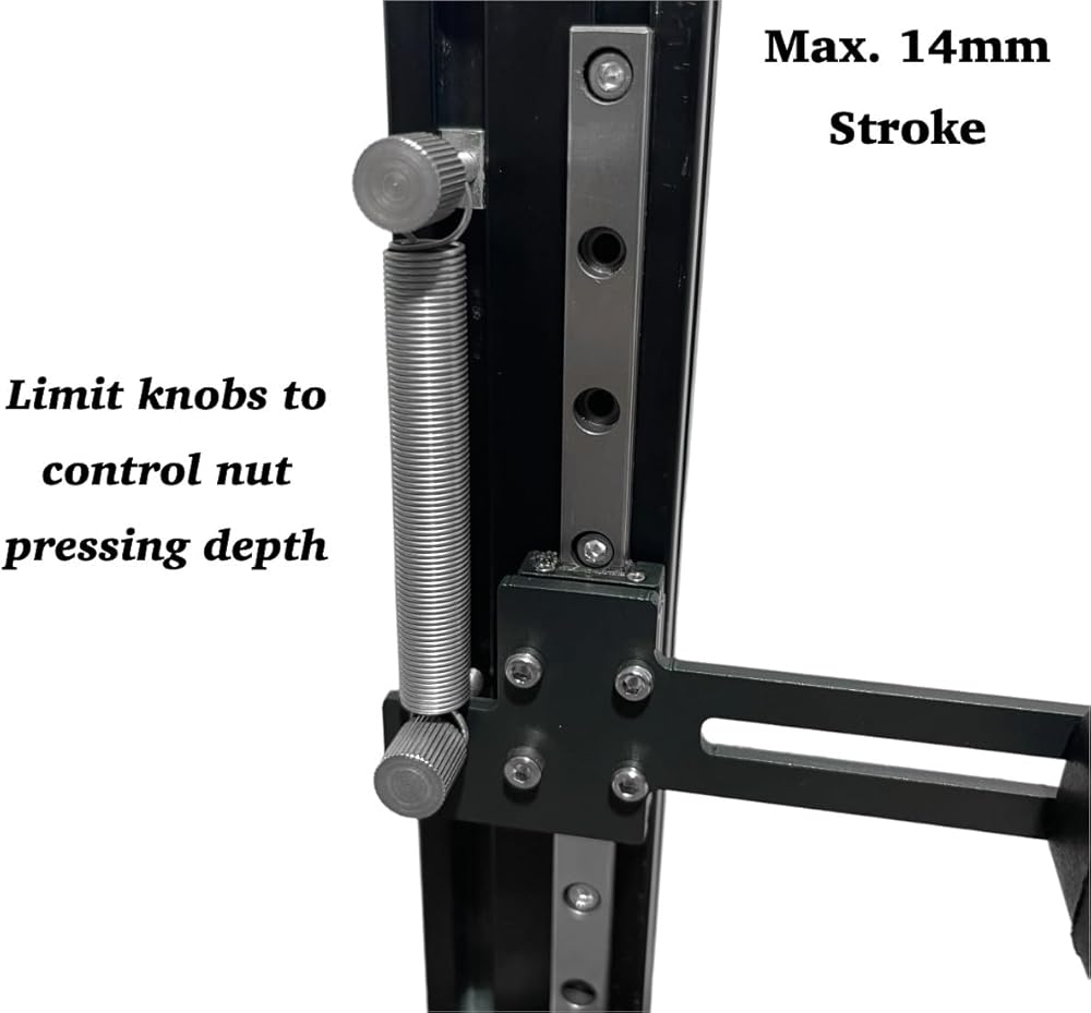 • Precision: Heat set insert tool features a vertically linear guide rail and sliding block with a max. 14cm stroke, with the pressing limit knob allowing for precise control of the nut pressing depth, ensuring accurate insertion of threaded inserts