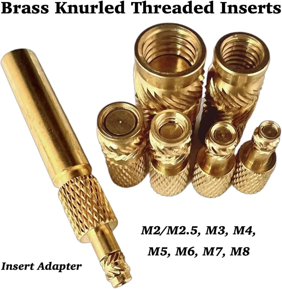 Interchangeable Tips: Heat set insert tool includes a set of brass knurled threaded insert tips in sizes M2/M2.5, M3, M4, M5, M6, M7, M8, with a tip adapter for easy interchange without needing to remove the soldering iron