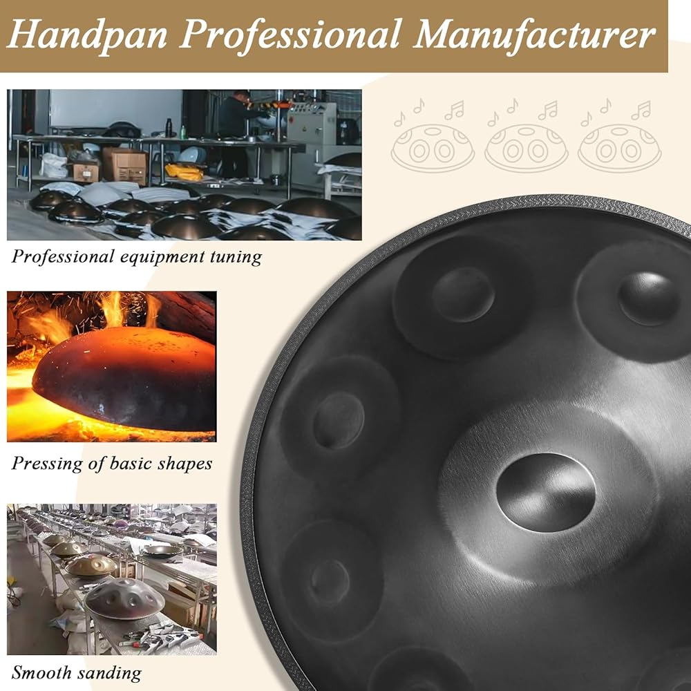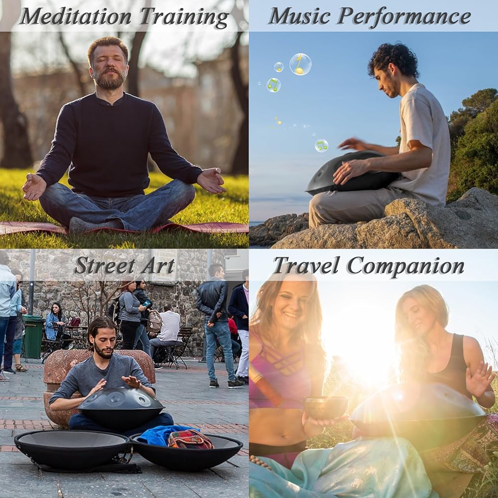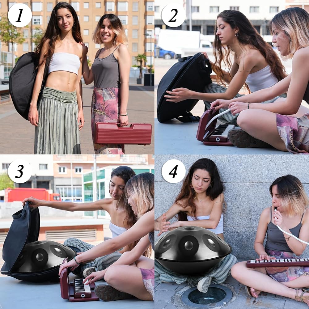 ملاحظة: الطبلة اليدوية لدينا مكتوبة بخط D طفيف، وتتضمن 10 نغمات (A3، Bb3، C4، D3، D4، E4، F4، G4، A4، C5). لا حاجة لأي معدات أخرى - ما عليك سوى النقر على الطبلة اليدوية بشكل إيقاعي بيديك لإنتاج ألحان آسرة.