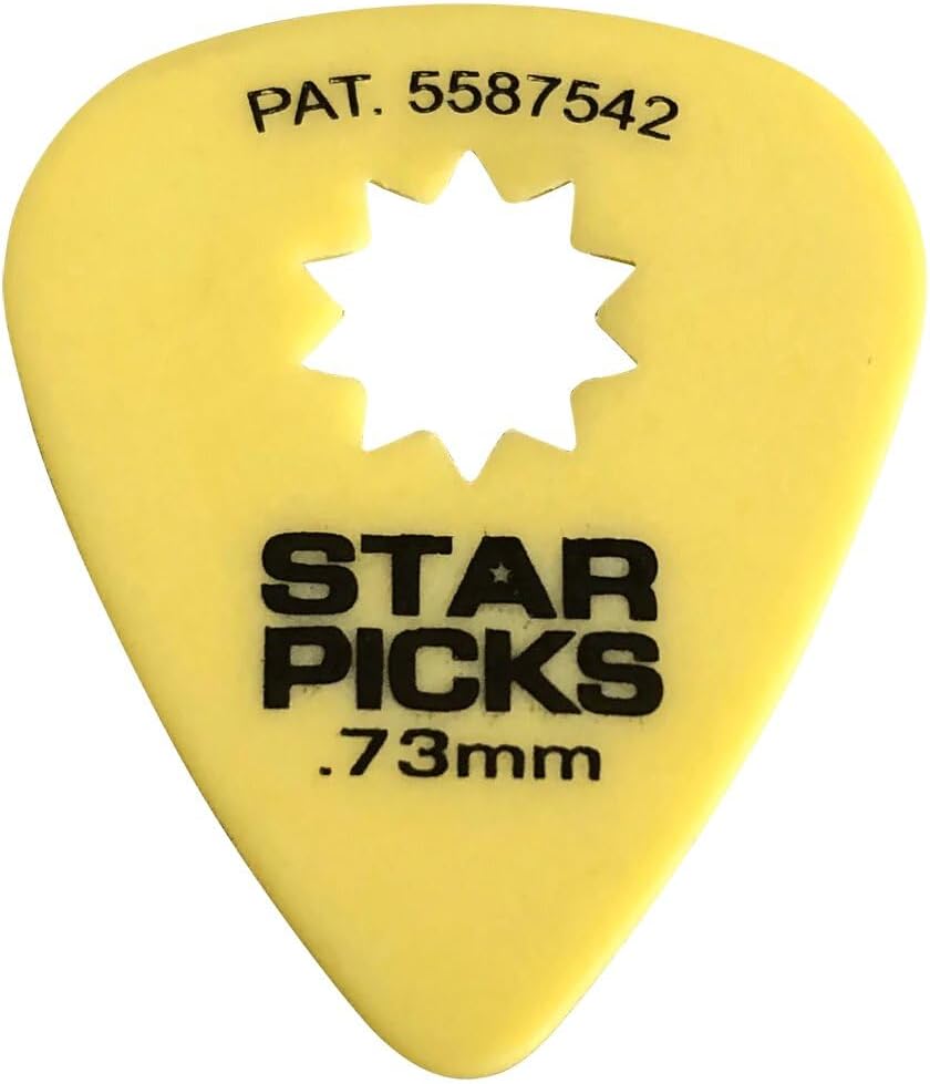 Using the standard 351 size pick, Everly added a star shaped cutout where your thumb and finger meet, for the perfect no-slip grip. No weird shapes, leashes or sticky goo from planet xoltar. Just a slight evolution to meet the needs of today's musician. Star picks are available in the six most popular gauges, from feather light to rock solid.. Using the standard 351 size pick, Everly added a star shaped cutout where your thumb and finger meet, for the perfect no-slip grip. No weird shapes, leashes or sticky goo from planet xoltar. Just a slight evolution to meet the needs of today's musician. Star picks are available in the six most popular gauges, from feather light to rock solid.
