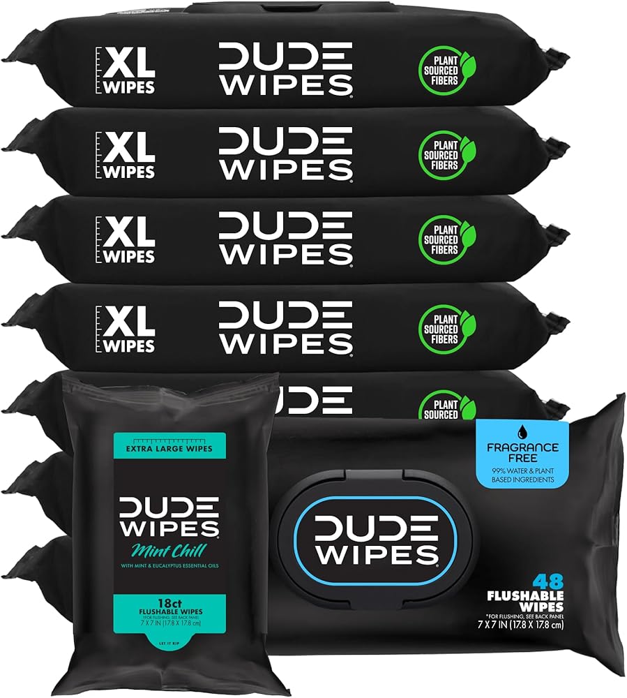 FLUSHABLE & 100% PLANT SOURCED FIBERS: Our flushable wipes are made with plastic free and plant sourced fibers, because we care about the planet and your pipes. Unlike baby wipes, DUDE Wipes are sewer and septic-safe and begin to break down when flushed. Say goodbye to toilet paper and say hello to DUDE flushable wet wipes for the whole family