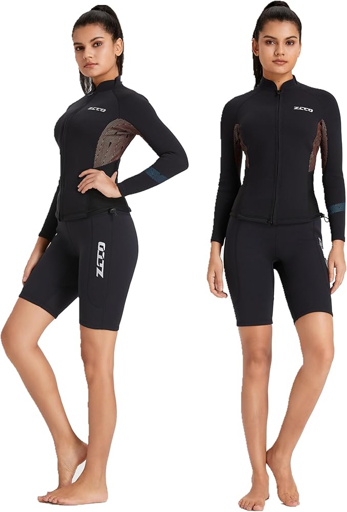 【حافظ على الدفء】سترة بذلة بأكمام طويلة دافئة وناعمة ومسامية ومريحة على الجلد، وتبطئ فقدان درجة حرارة الجسم بسبب السباحة أو الغطس، وتقلل من سحب الماء وتحافظ على دفء الغواصين. في الماء البارد، عندما يدخل الماء إلى سترة النيوبرين، فإنه يترك طبقة رقيقة من الماء على الجسم. ثم يستمر الجسم في التحرك لتوليد الحرارة والتدفئة والحفاظ على دفء الجسم، لذلك يسمح للرجال أو النساء بالغطس والغوص لفترة أطول وأكثر دفئًا.