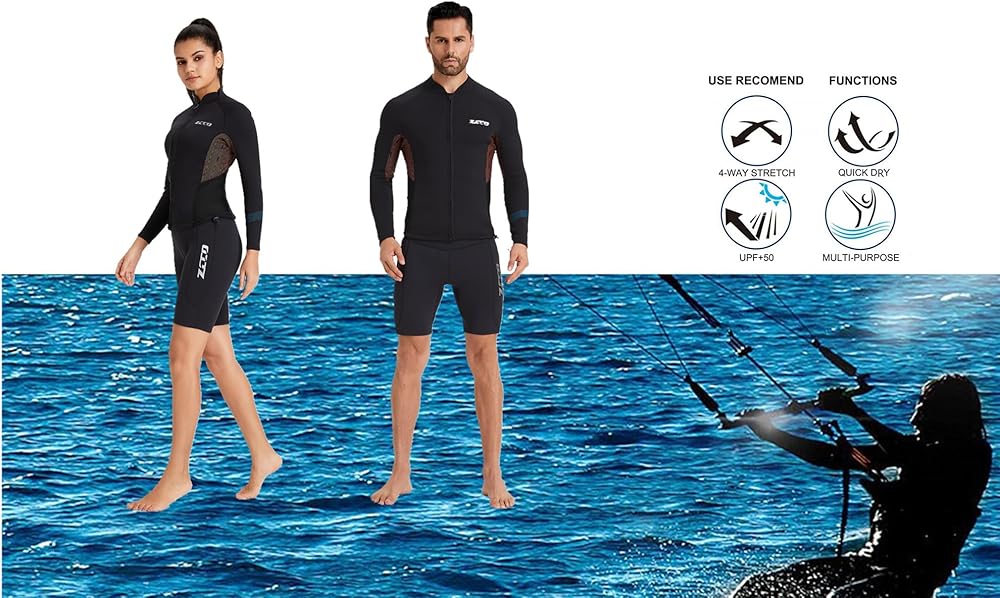 [متعدد الاستخدامات] تم تصميم البدلة المبللة بأكمام طويلة خصيصًا للياقة البدنية المائية والتمارين الرياضية المائية، وهي رائعة لأي رياضات مائية توفر حماية من الأشعة فوق البنفسجية والدفاع ضد قمل البحر والهلام والمهيجات البيولوجية الأخرى. يبقيك دافئًا في الظروف الباردة للغوص، والتجديف، والتزلج الشراعي، والتزلج على الماء، والتجديف بالكاياك، والتجديف وغيرها من الرياضات المائية.