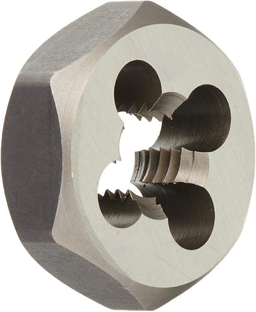 Ideal for auto repair and machinery where metric threads are specified. Recommended for cutting external threads by hand. In areas with limited space, the dies can be used with a wrench or socket. Advanced die geometry provides faster cutting and longer life. Die size is etched on each tool for easy identification. Thread size: 14 mm. Thread Pitch: 2.00 mm. Thread standard: metric. Outside diam: 1-7/16 in. Cutting direction: right. Tool shape: hexagon. Applicable materials: most metals. Material: high carbon steel.