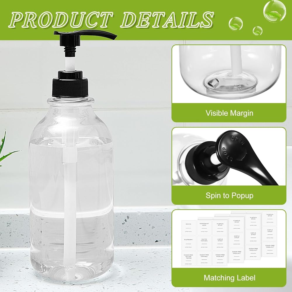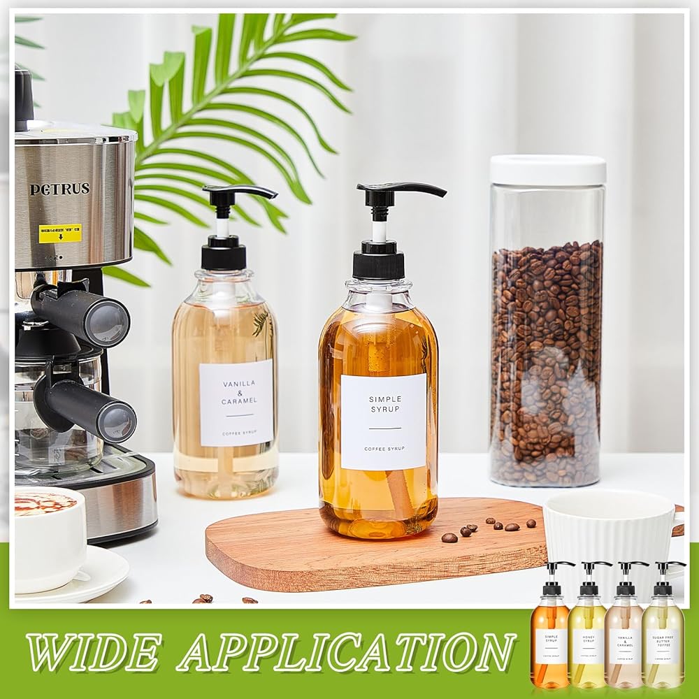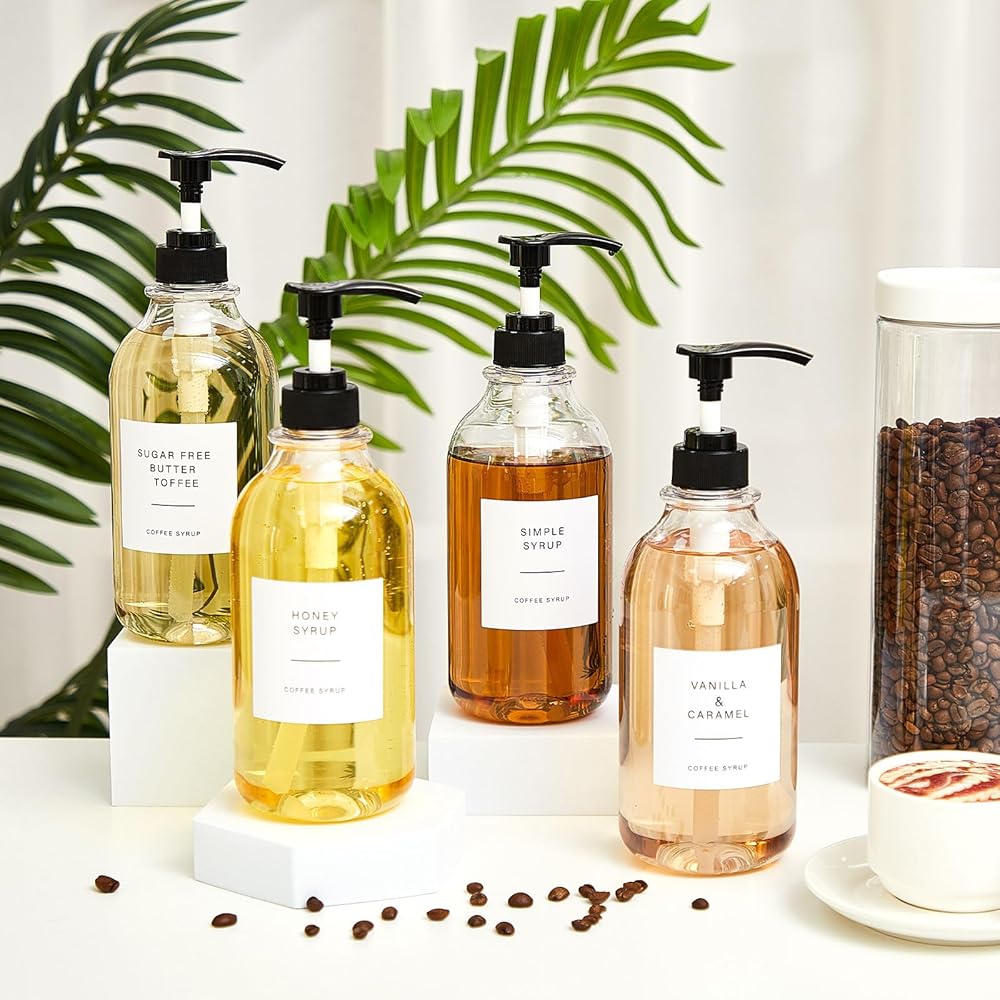 The plastic syrup bottles come in a clear PET bottle body, ideal for identifying the condiment inside with a simple look.