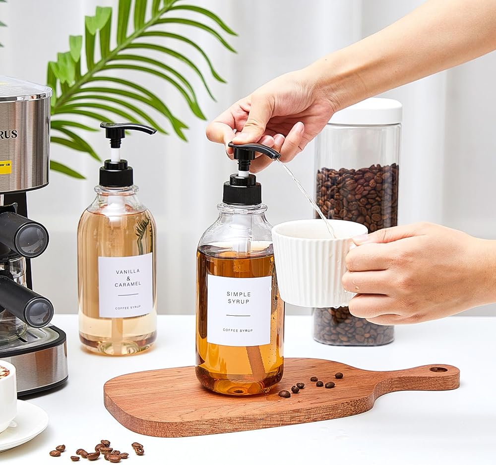 Our coffee syrup pump dispenser set is not just designed for coffee syrups. These 26.4 oz syrup bottles for coffee bar accommodate a variety of condiments, making it a multipurpose bottle that adds convenience to your kitchen.
