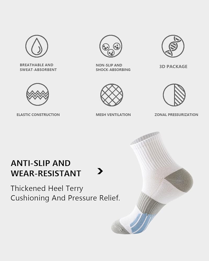 التصميم: تم تصميم الجوارب الدائرية ببراعة مع شبكة تهوية لتعزيز تدفق الهواء، والحفاظ على قدميك باردة وجافة. يوفر تصميم الضغط الصغير للقوس دعمًا ممتازًا للقدم، مما يحسن راحتك أثناء المشي أو ممارسة الرياضة. علاوة على ذلك، توفر البطانة الممتدة من أصابع القدم إلى الكعب راحة إضافية وحماية من الصدمات. خياطة معززة بدون خياطة عند الكعب والأصابع تقلل من الاحتكاك، مما يضمن استخدامًا يدوم طويلاً