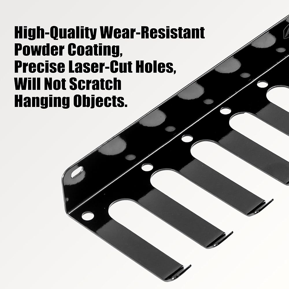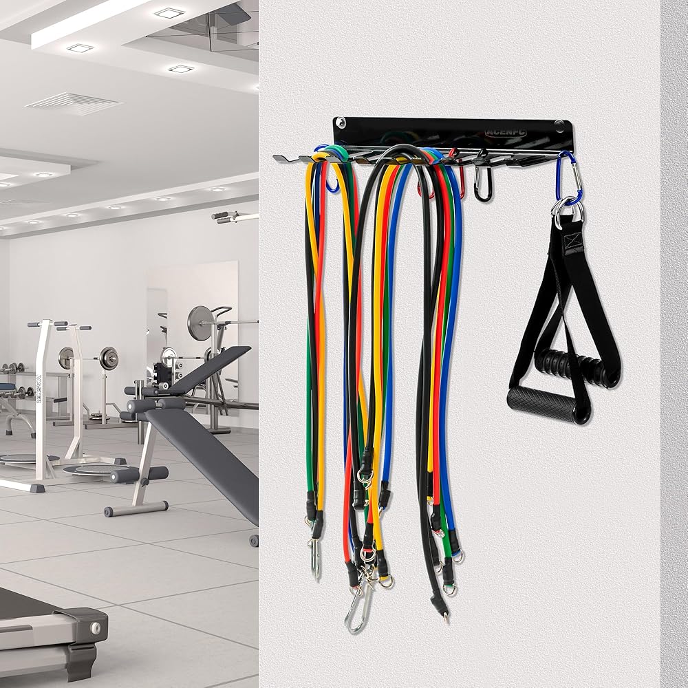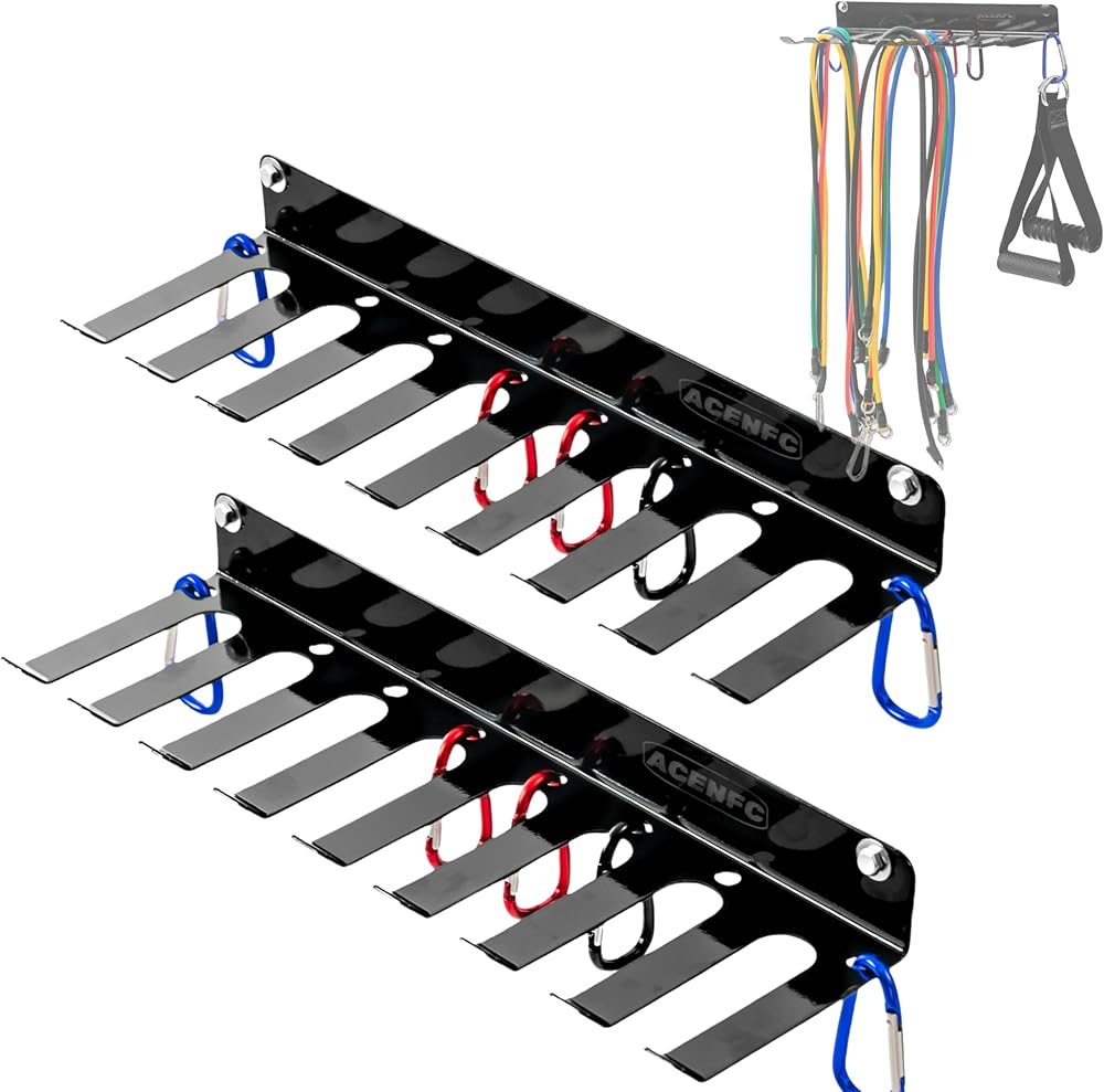 • Bonus Heavy-Duty Carabiners for Added Storage Includes five 3-inch carabiners for hanging jump ropes, fitness straps, and yoga bands. These hooks enhance the rack's versatility, making it a multi-functional resistance band rack, barbell hook wall mount, and battle rope storage hanger. Suitable for organizing home gym accessories and garage gym equipment.