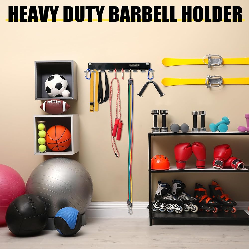 • Easy Installation and Long-Lasting Durability Comes with all hardware for secure wall mounting in home gyms, garage workout rooms, or commercial fitness facilities. This multi-purpose storage rack serves as a barbell holder wall rack, resistance bands wall-mounted organizer, and dumbbell wall storage solution. Its sleek design and durable construction save space and provide professional-grade organization.