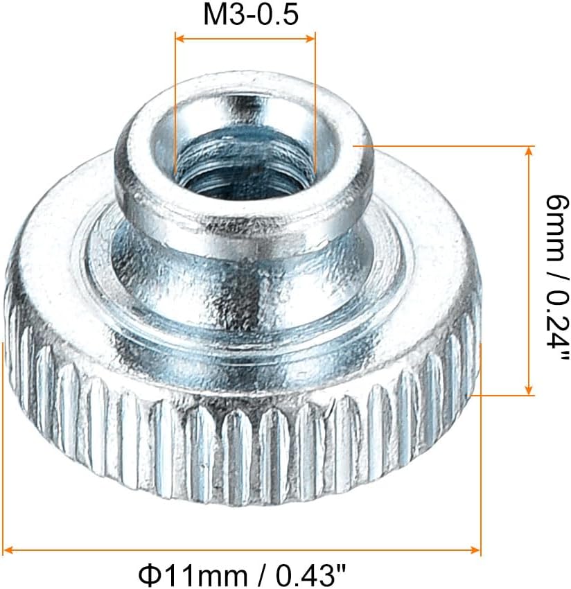 صواميل الإبهام المخرشة: السطح: مجلفن؛ حجم الخيط: M4-0.7؛ الحجم الإجمالي: 12 × 8 مم/0.47 بوصة × 0.31 بوصة (عمق × ارتفاع)؛ ضياء طرفي صغير: 8 مم/0.31 بوصة؛ تتضمن العبوة: 5 قطع × صواميل إبهام مخرشة