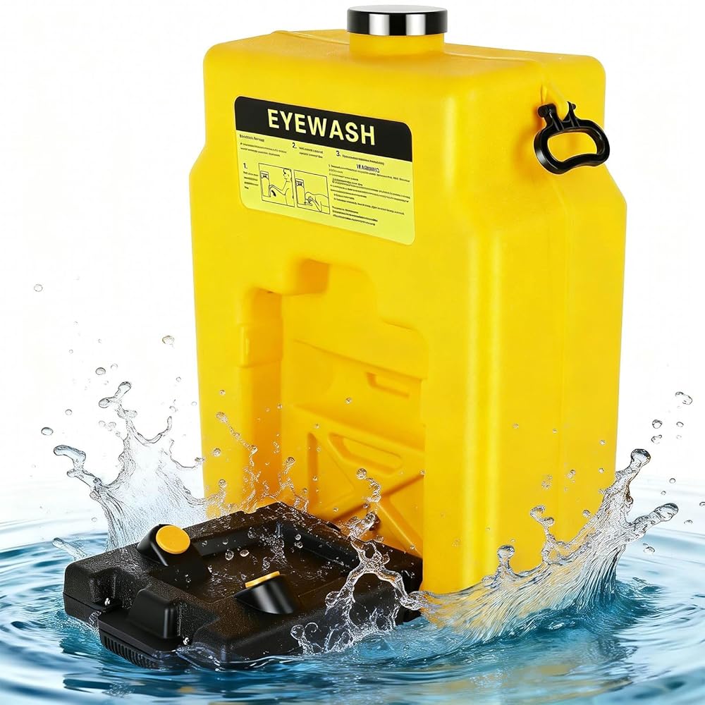 محطة غسيل العين 14 جالون (53 لتر)، محطة غسيل العين المحمولة معتمدة من إدارة السلامة والصحة المهنية، محطة غسيل العين تدوم لمدة 15 دقيقة، محطات غسيل العين للإسعافات الأولية وحدة معتمدة من إدارة السلامة والصحة المهنية، محطة غسيل العين مع رذاذ مزدوج