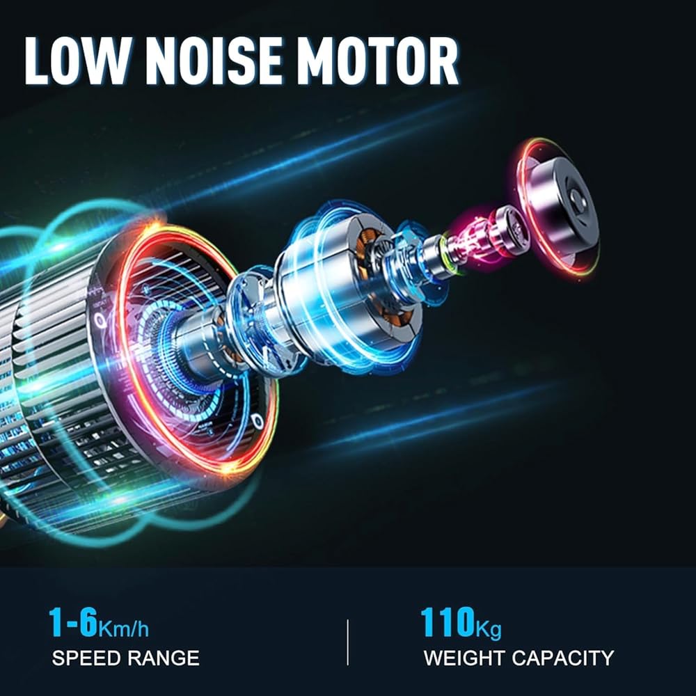 【POWERFUL MOTOR&LOW NOISE】: The slim treadmill motor adopts advanced technology, which not only ensures durability, but is also quiet in use. Suitable for walking and running exercises.