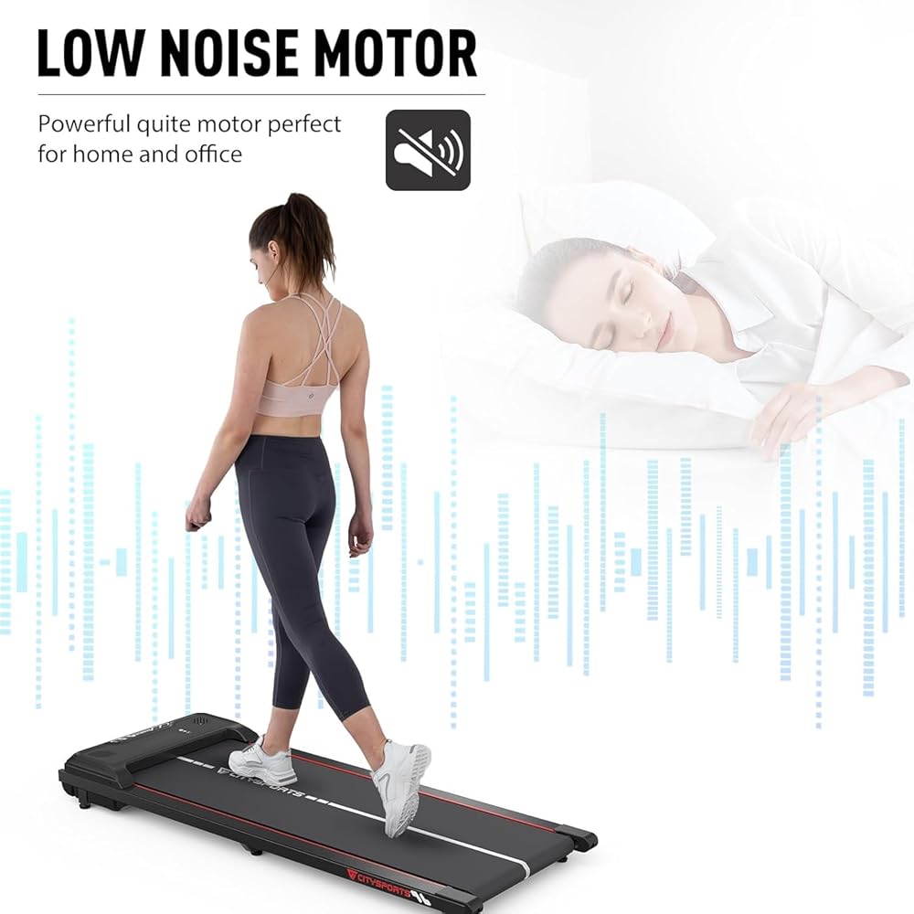【Portable + Slim + Silent】: The CITYSPORTS ultra-thin Walking machine is easy to store and saves space in your home. This treadmill is perfect for the office and home. The motor and the silent belt allow you to exercise without disturbing your colleagues or family.