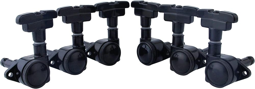 موالف قفل جيتار Guyker (3L + 3R) - 1:21 سلسلة قفل آرت ديكو ضبط أوتاد المفاتيح الدوارة رأس الآلة مع استبدال رأس الطراز الإمبراطوري للقيثارات الكهربائية أو الشعبية أو الصوتية - أسود
