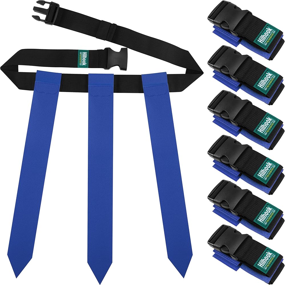 يحتوي حزام كرة القدم ذو العلم على ثلاثة أعلام قابلة للفصل يتم تثبيتها على الحزام بخطاف وحلقة. عندما يسحب لاعب دفاعي العلم، يتم تحريره من الحزام، بينما يبقى الحزام نفسه على اللاعب المهاجم