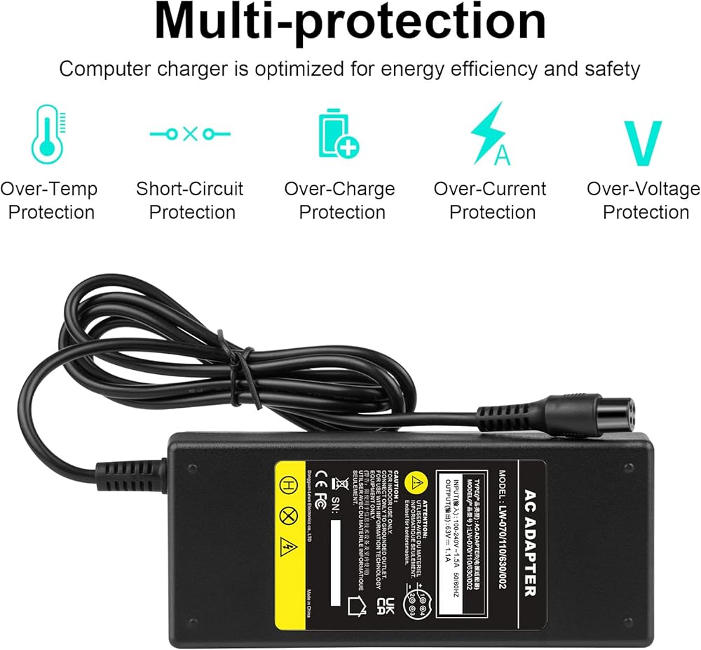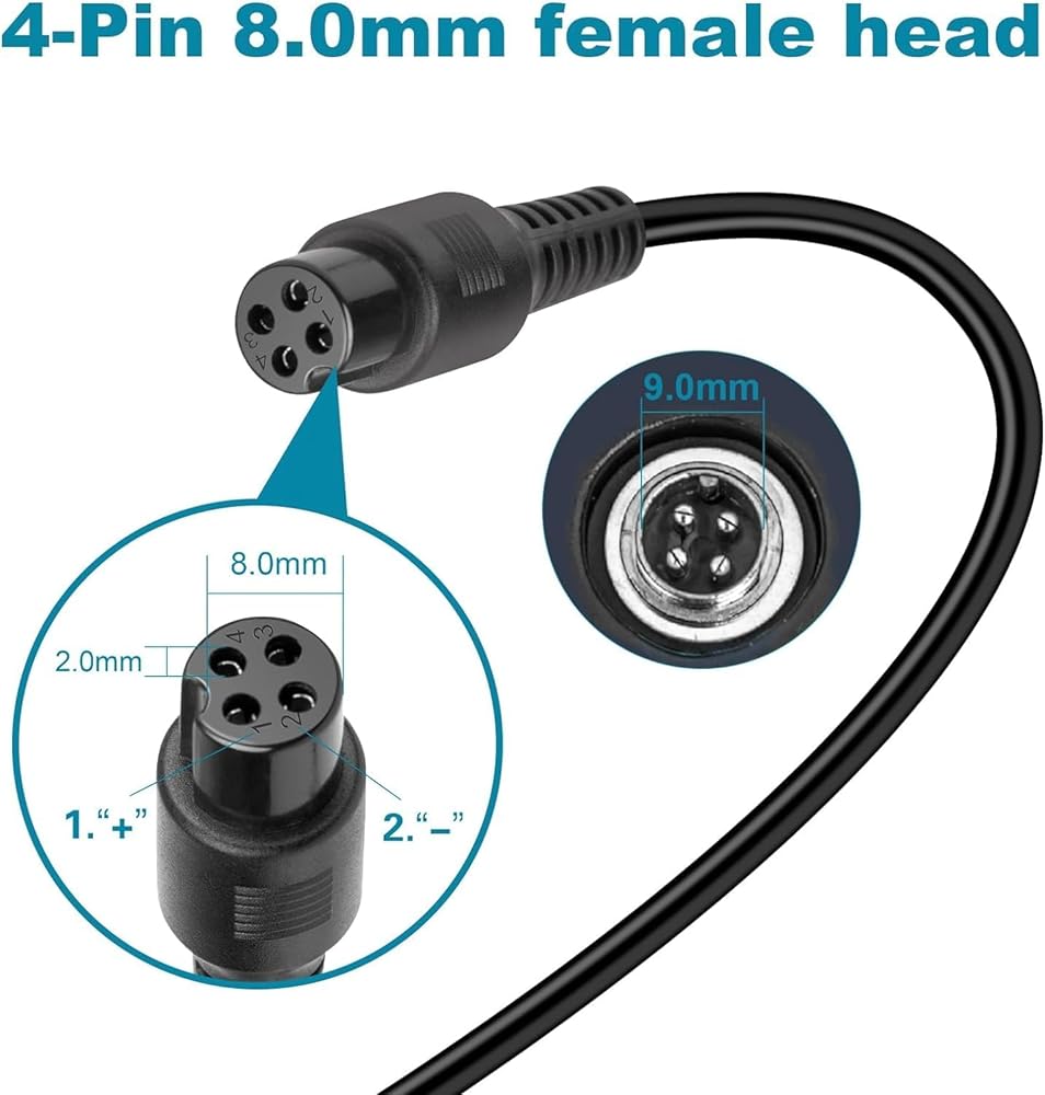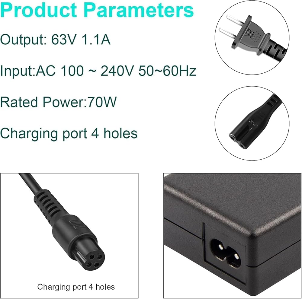 【مواصفات الطاقة 】الإخراج: 63 فولت 1.1 أمبير الإدخال: تيار متردد 100-240 فولت. نوع قابس الشحن: رأس أنثى 4 شقوق 0.35 بوصة. (كن حذرًا! تأكد من أن حجم الموصل هو نفس حجم الشاحن الأصلي!!!)