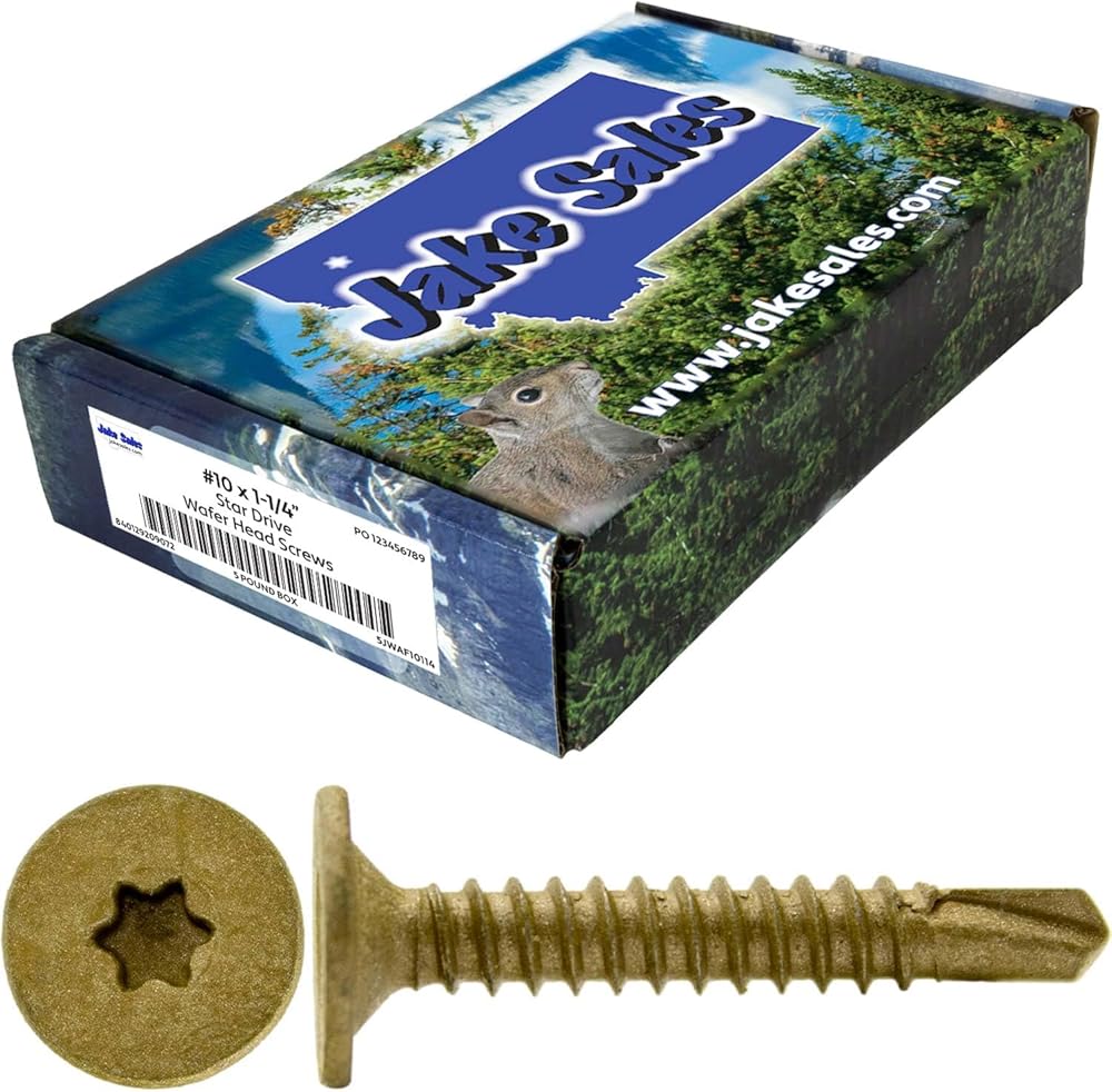 These #10-16 X 1-1/4 have a head diameter of about 7/16" and a thread length of ~7/8". Install these screws using a T25 Torx/Star drive bit. Wafer Screws with the drill point tip - will drill, tap, and secure in one operation. This Listing is for a 1 pound box - ~139 Approx. Screw Count
