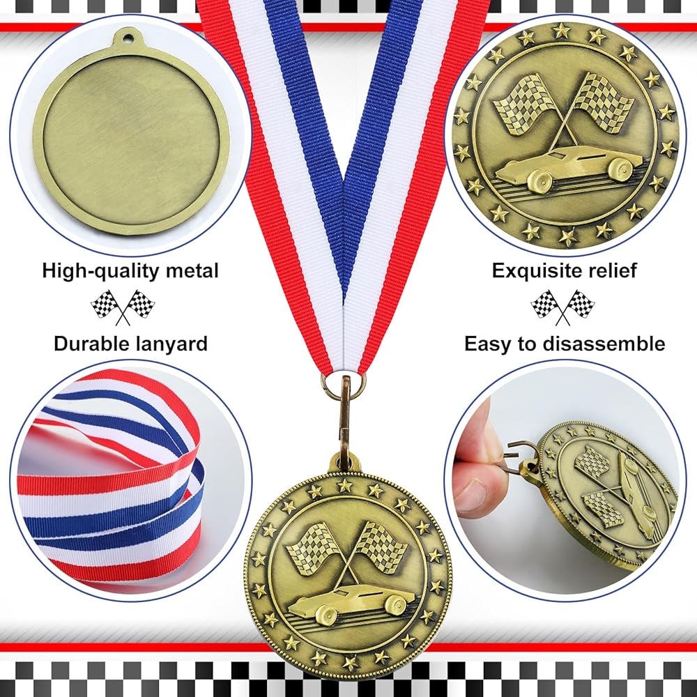 Bearing an antique gold color, these race car derby medals add a touch of timelessness and prestige to your accomplishment. Under different lighting, the medals showcase a dazzling effect, highlighting their intricate design and your achievement.