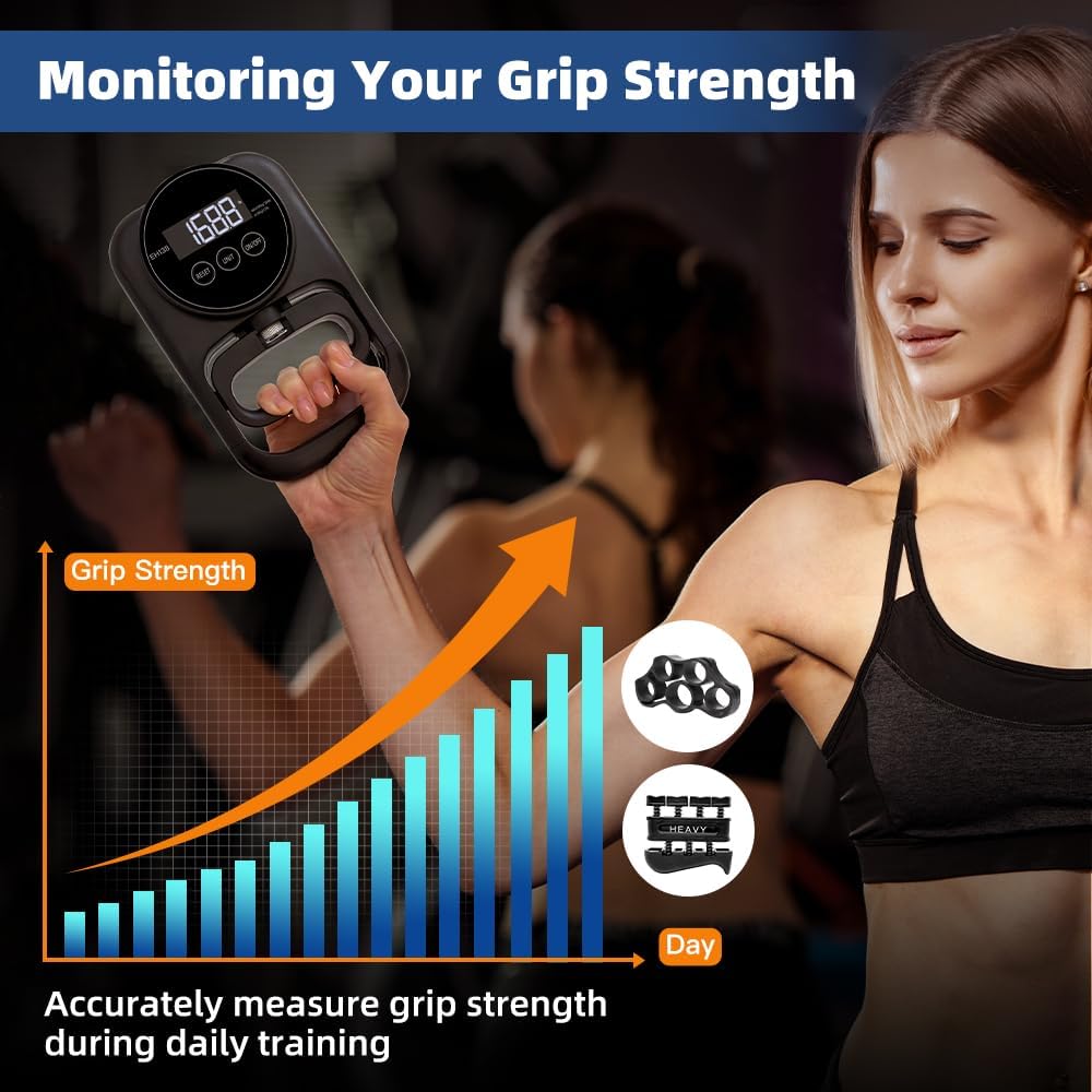 𝐏𝐫𝐞𝐜𝐢𝐬𝐢𝐨𝐧 𝐆𝐫𝐢𝐩 𝐌𝐞𝐚𝐬𝐮𝐫𝐞𝐦𝐞𝐧𝐭: عزز تدريبك باستخدام المقبض اليدوي الخاص بنا، وقياس قوة القبضة حتى 265 رطلاً (120 كجم). بفضل المستشعر عالي الدقة، يقوم مدرب قوة القبضة بتتبع تحسينات قوة قبضتك