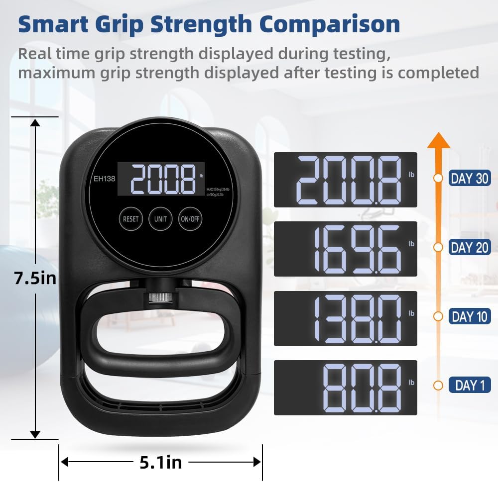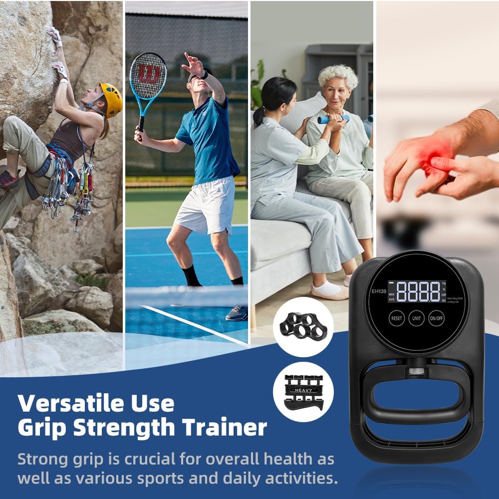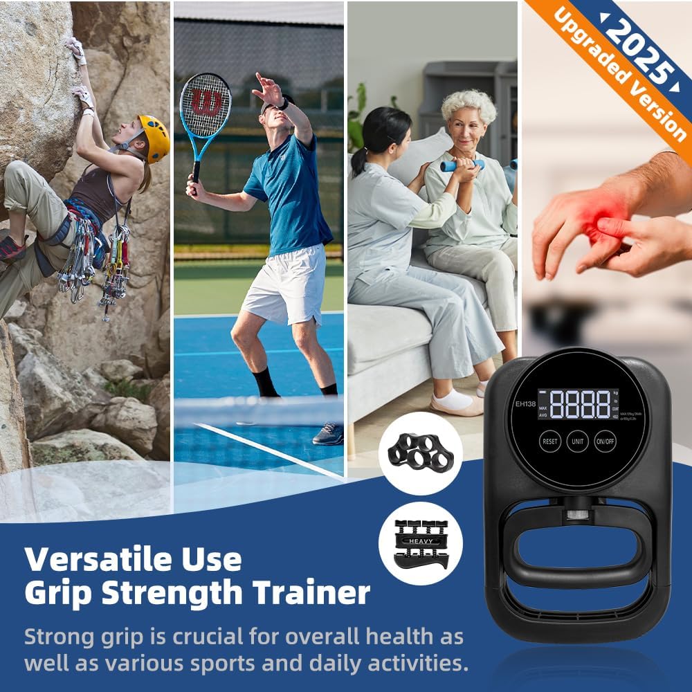 قوة القبضة أمر حيوي للرياضات مثل تسلق الصخور، والمصارعة، والجمباز، وتعمل كأداة لتقييم الصحة. يعد مقياس قوة قبضة اليد مثاليًا للفرق الرياضية والعائلات لتتبع تقدم قوة القبضة