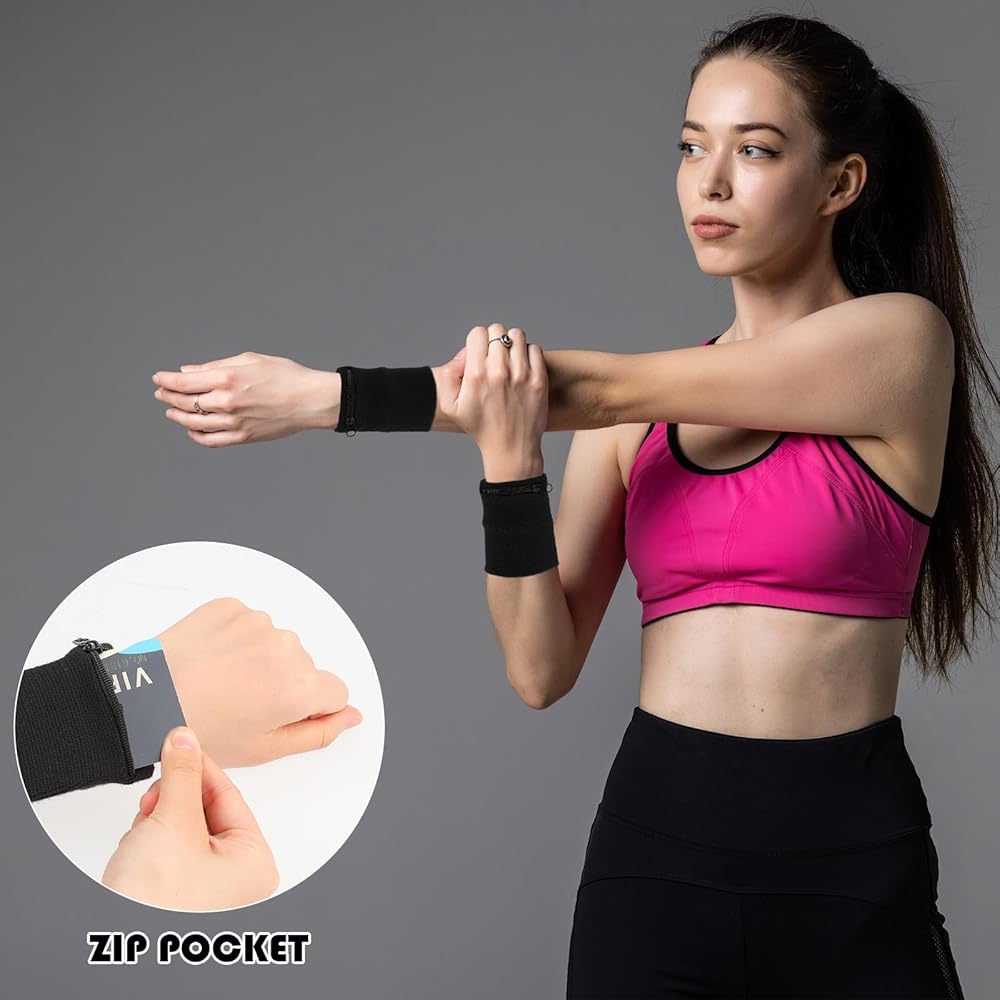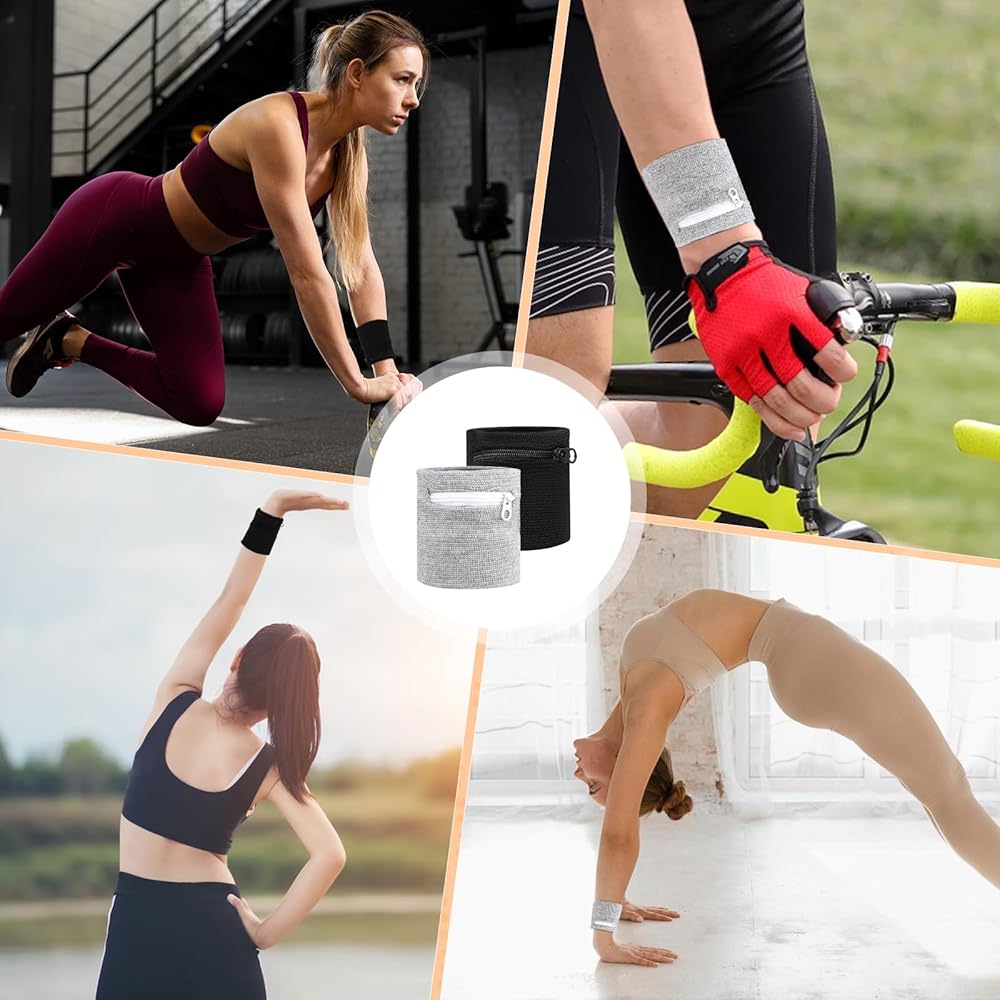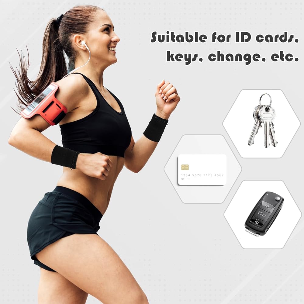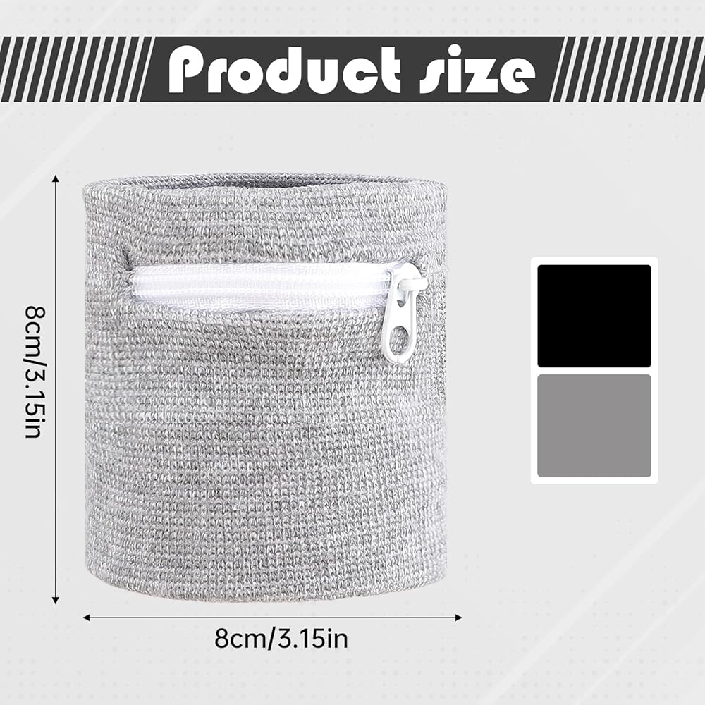 Zipper pocket: Light comfortable sports absorb sweat wristbands features a zipper design, which is large enough to store your coins, keys, wedding rings, credit cards or cash, etc. Wrist wallet is an ideal solution for protecting valuables during outdoor sports and travel.