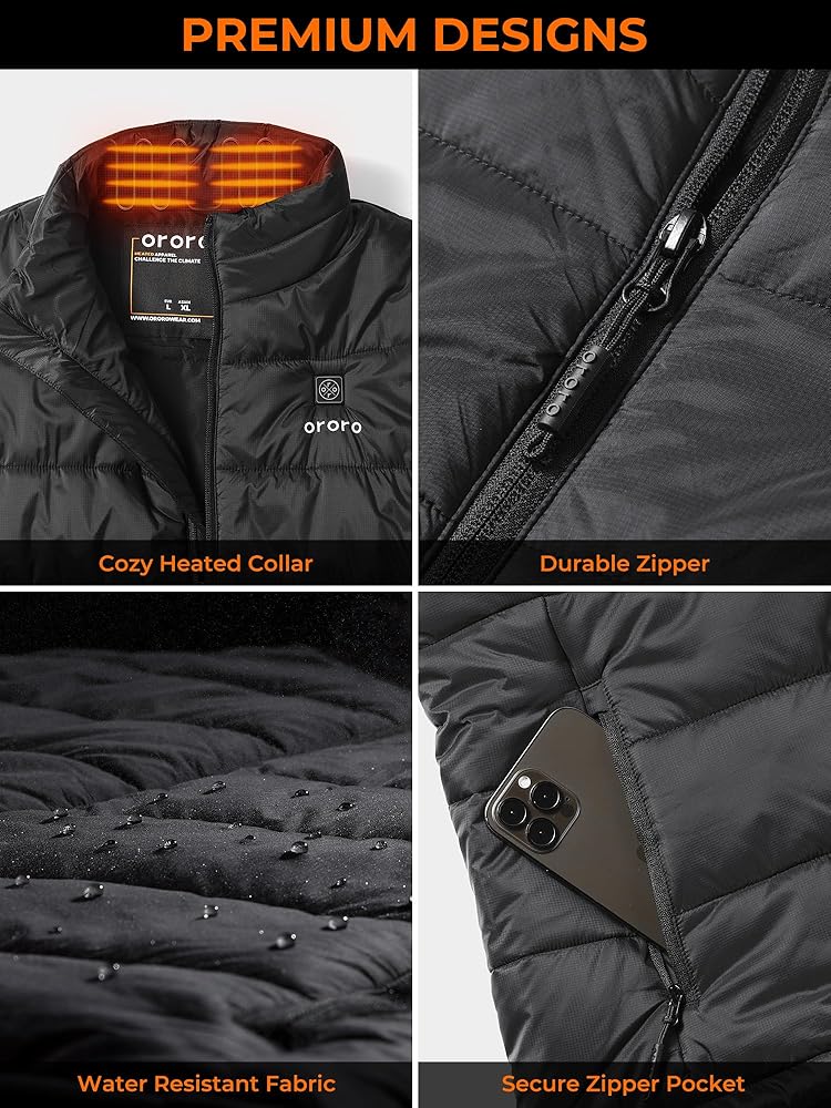 سترة ORORO للرجال قابلة للتدفئة (أسود، L) ووشاح مُدفأ (55 بوصة)