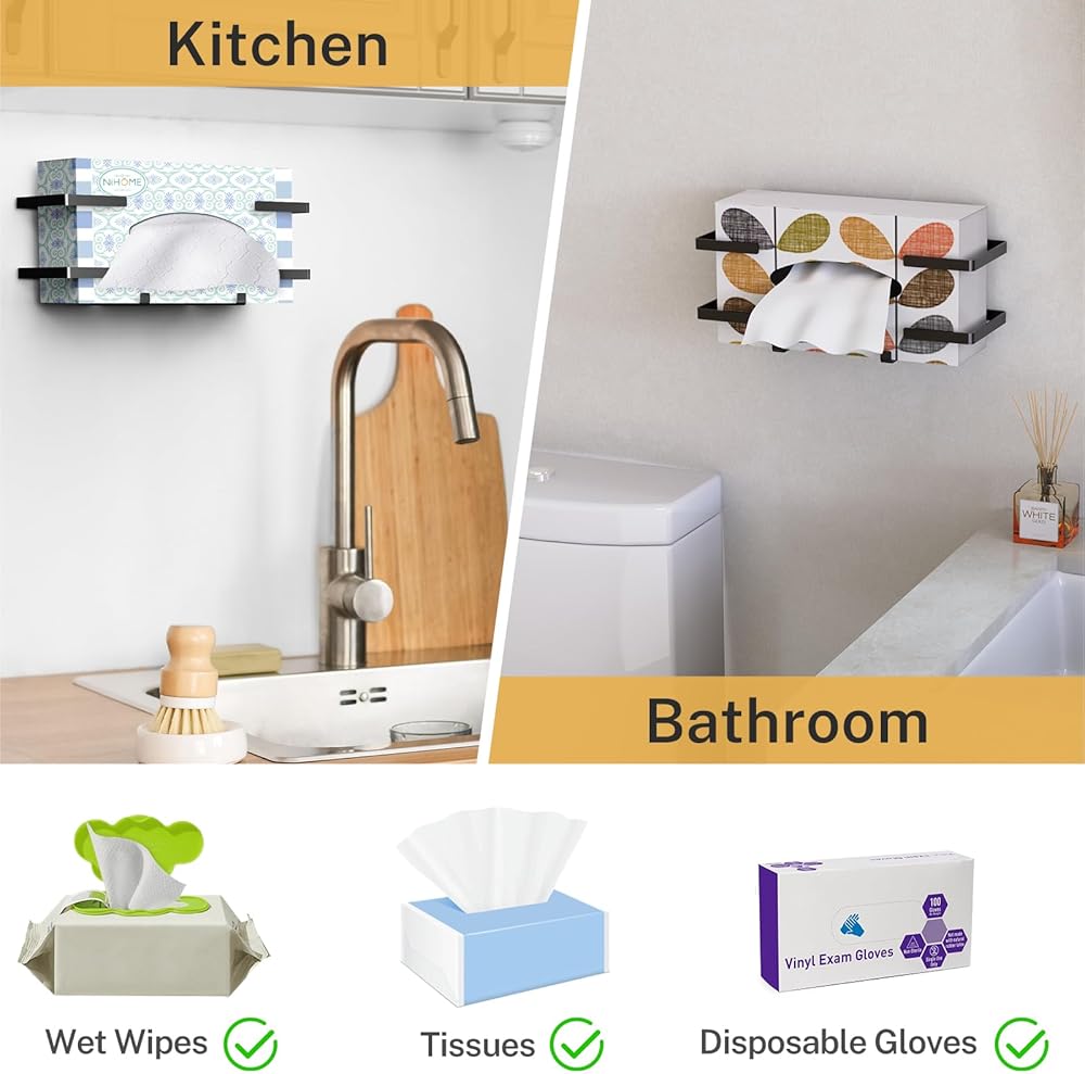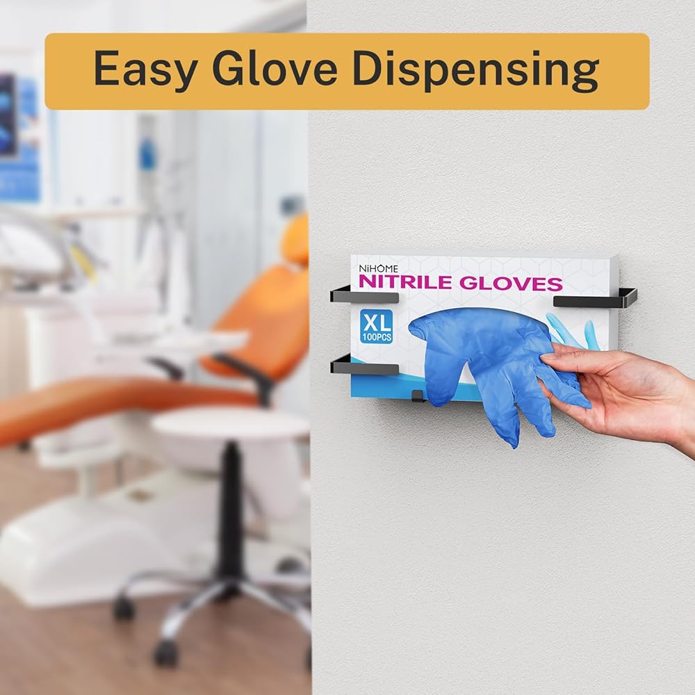 NiHome Wall-Mounted Metal Glove Box Dispenser for Kitchens, Garages, Labs, Hospitals, Salons, Easy Installation Minimalist Design Fits Most Disposable Gloves, Tissues, Plastic Bags, Baby Wipes (Black)