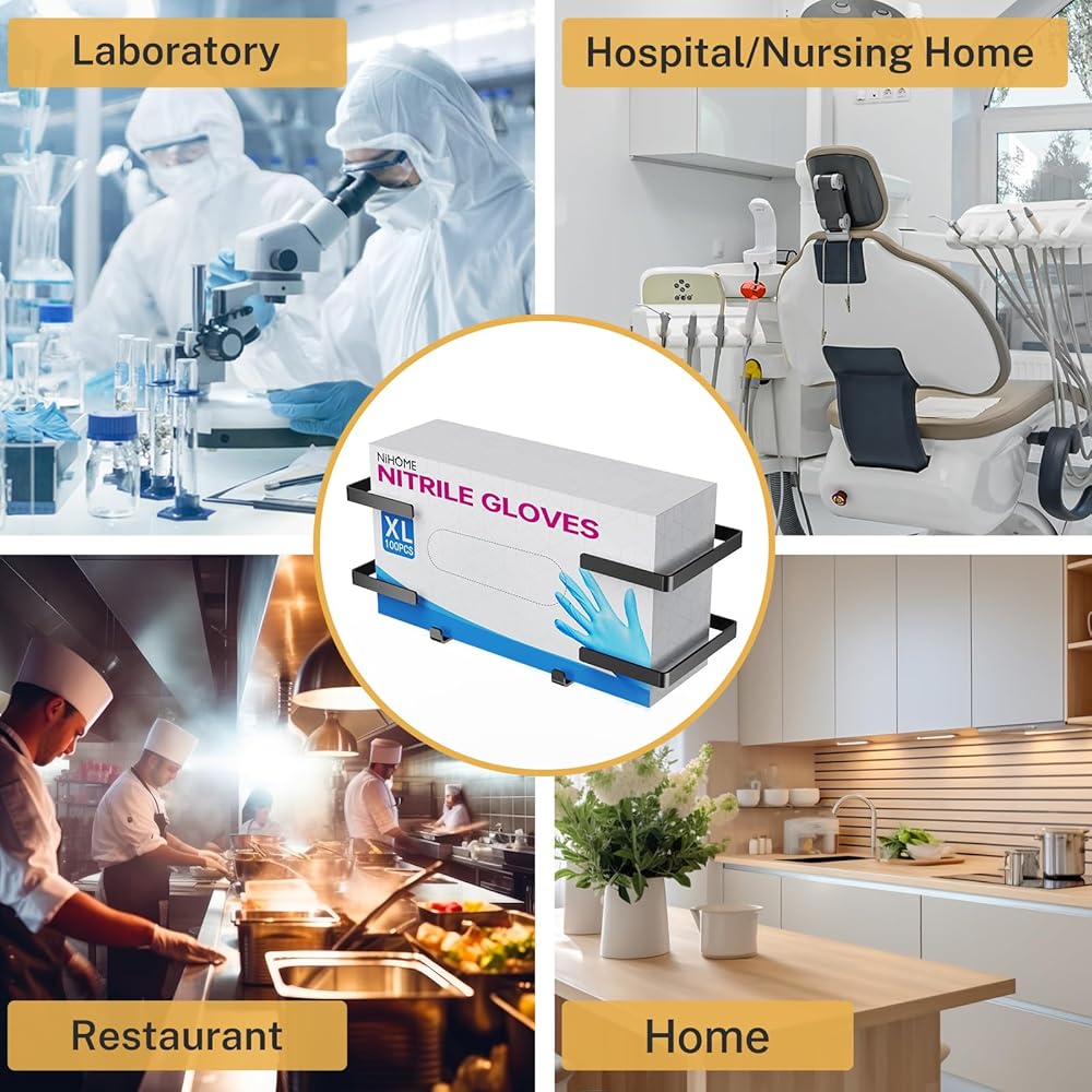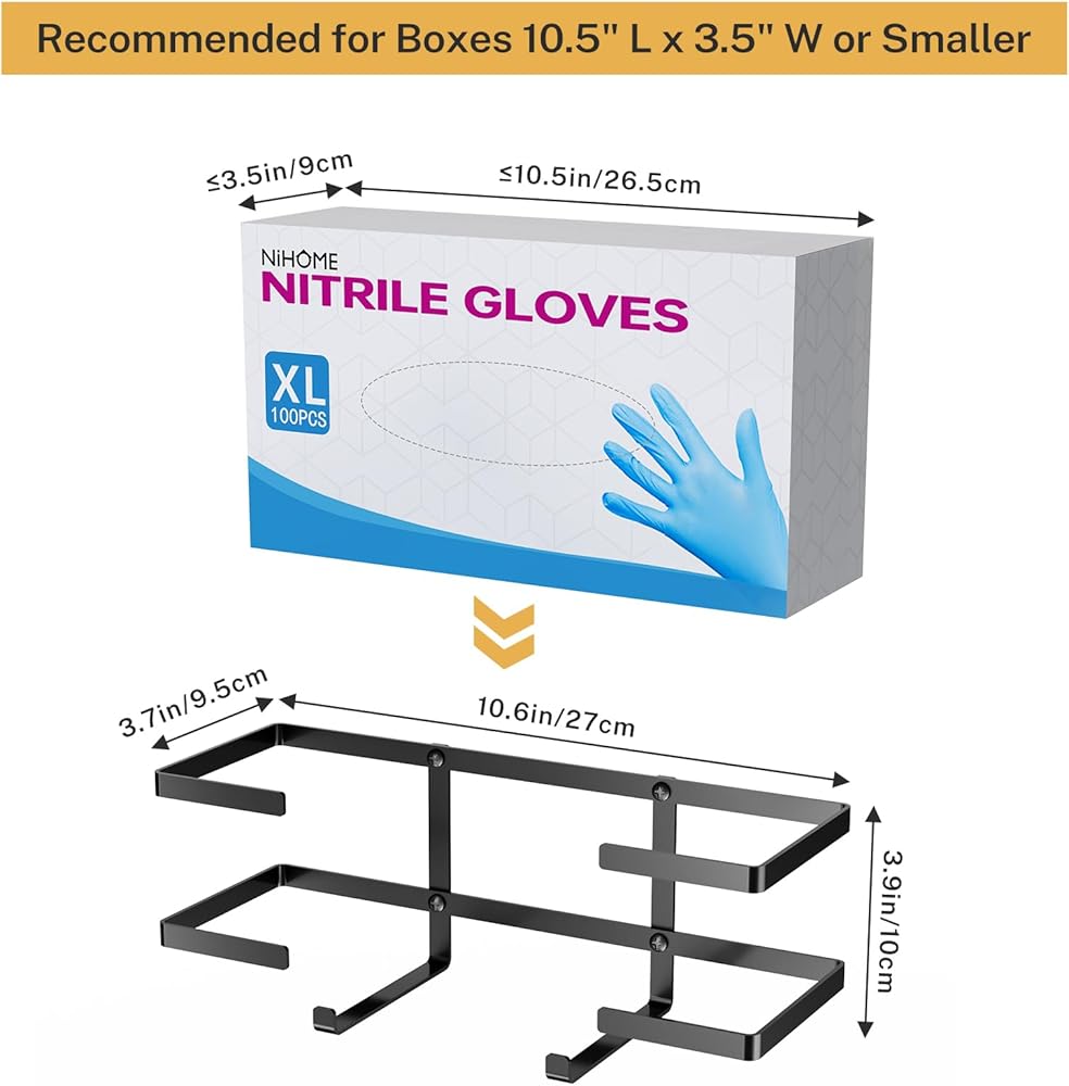 موزع صندوق قفازات معدني مثبت على الحائط من NiHome للمطابخ والجراجات والمختبرات والمستشفيات والصالونات، تصميم بسيط سهل التركيب يناسب معظم القفازات التي تستخدم لمرة واحدة، والمناديل، والأكياس البلاستيكية، ومناديل الأطفال (أسود)
