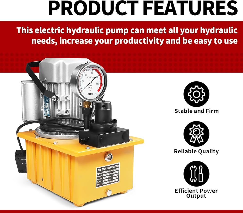 This electric hydraulic pump is equipped with a 7L oil tank, a shockproof pressure gauge, making it perfectly meet your hydraulic needs, increase your productivity and be easy to use.