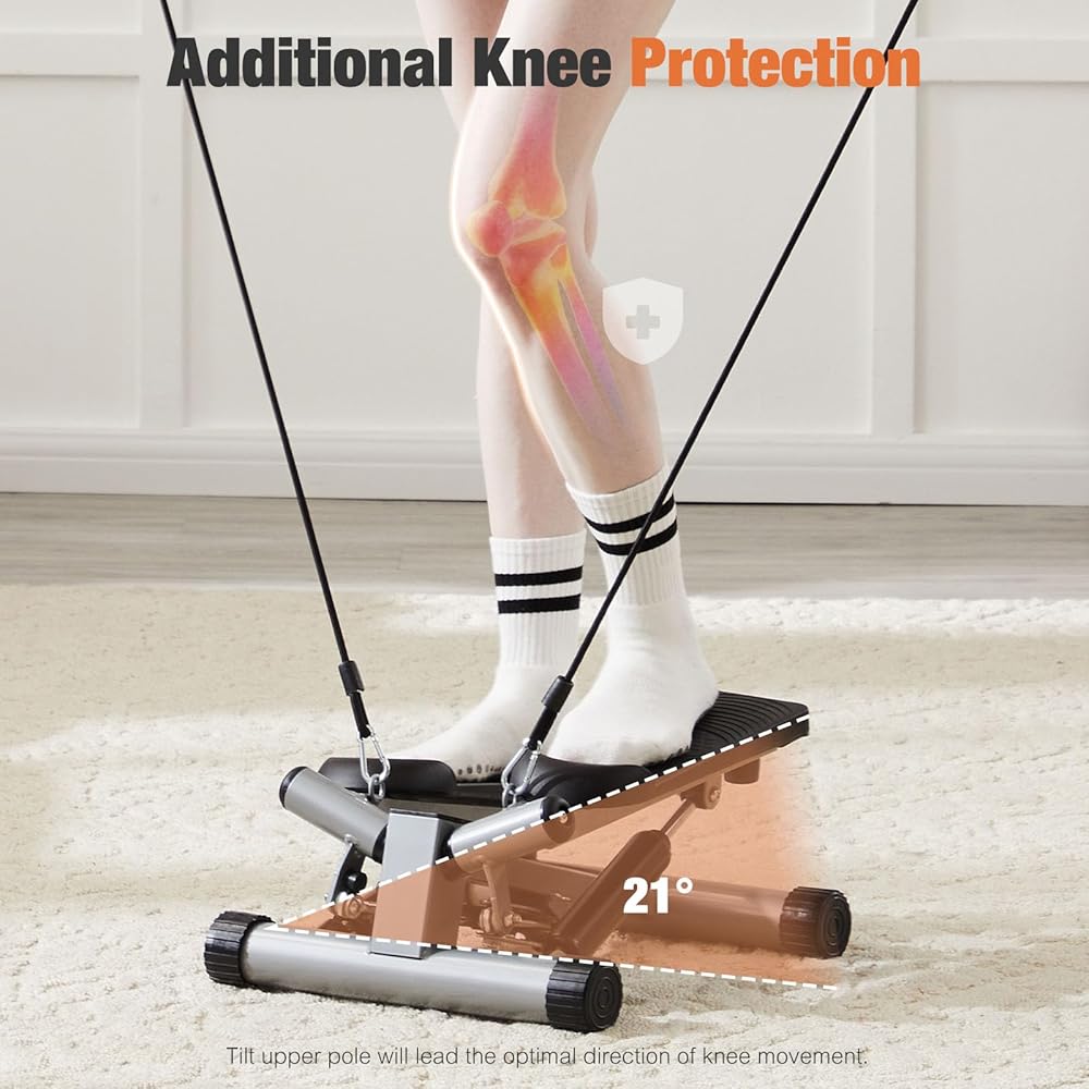 سويت كريسبي ميني ستاير ستيبرز مع أشرطة مقاومة للتمرين في المنزل، آلة ستيبر محمولة للتمرين لكامل الجسم، سعة 265 رطل