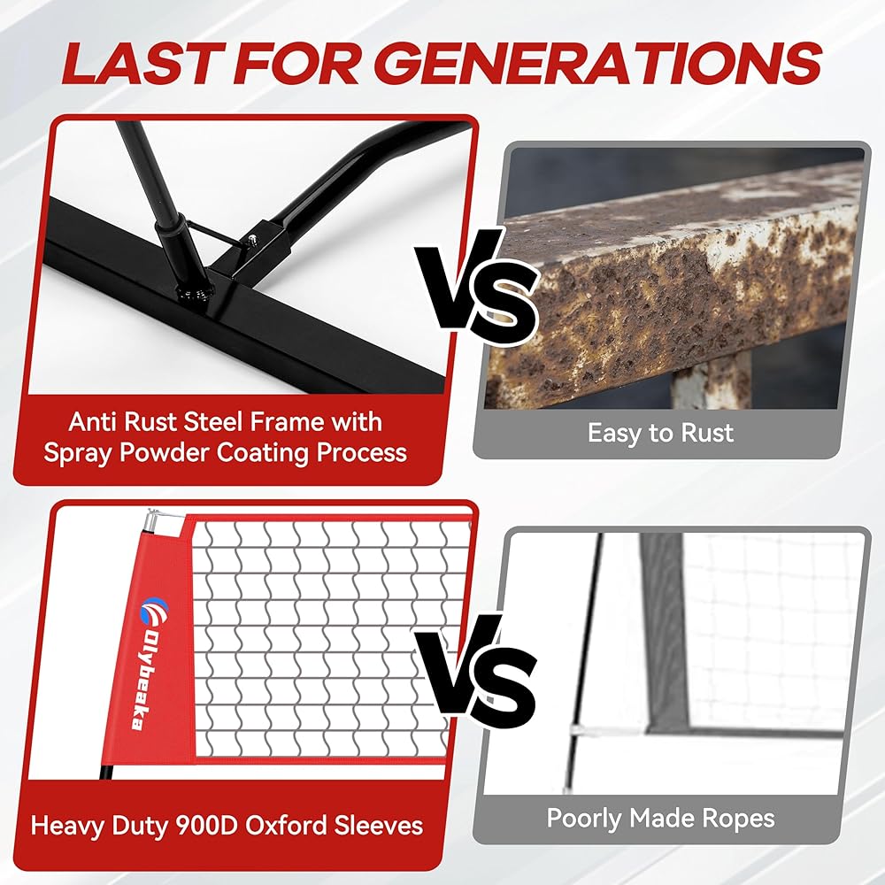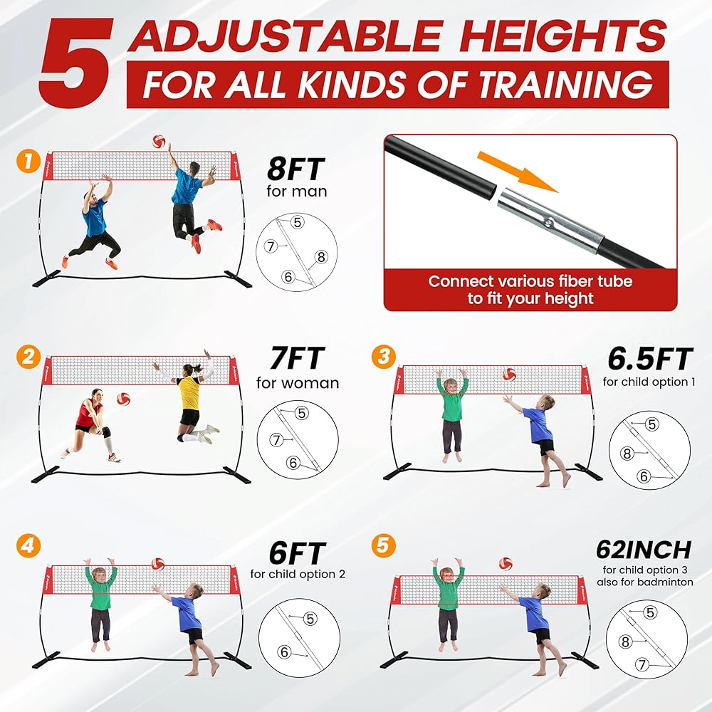 • 𝐌𝐨𝐫𝐞 𝐇𝐞𝐢𝐠𝐡𝐭𝐬 𝐎𝐩𝐭𝐢𝐨𝐧𝐬: تعمل أحجام مختلفة من أنابيب الألياف الزجاجية معًا لتحقيق 4 ارتفاعات للكرة الطائرة، مثل 8 أقدام للذكور، و7.4 أقدام للإناث، و6.5 أقدام و 6 أقدام للأطفال. وفقا لدليل التشغيل، يمكن تعديلها بسهولة للتدريب على احتياجات مختلف الأعمار والمستويات الفنية. الارتفاع الخاص: 62 بوصة هو الحد الأدنى للارتفاع لدينا، وارتفاع أعلى إلى حد ما وهو مصمم خصيصًا للعب كرة الريشة أو التدريب.