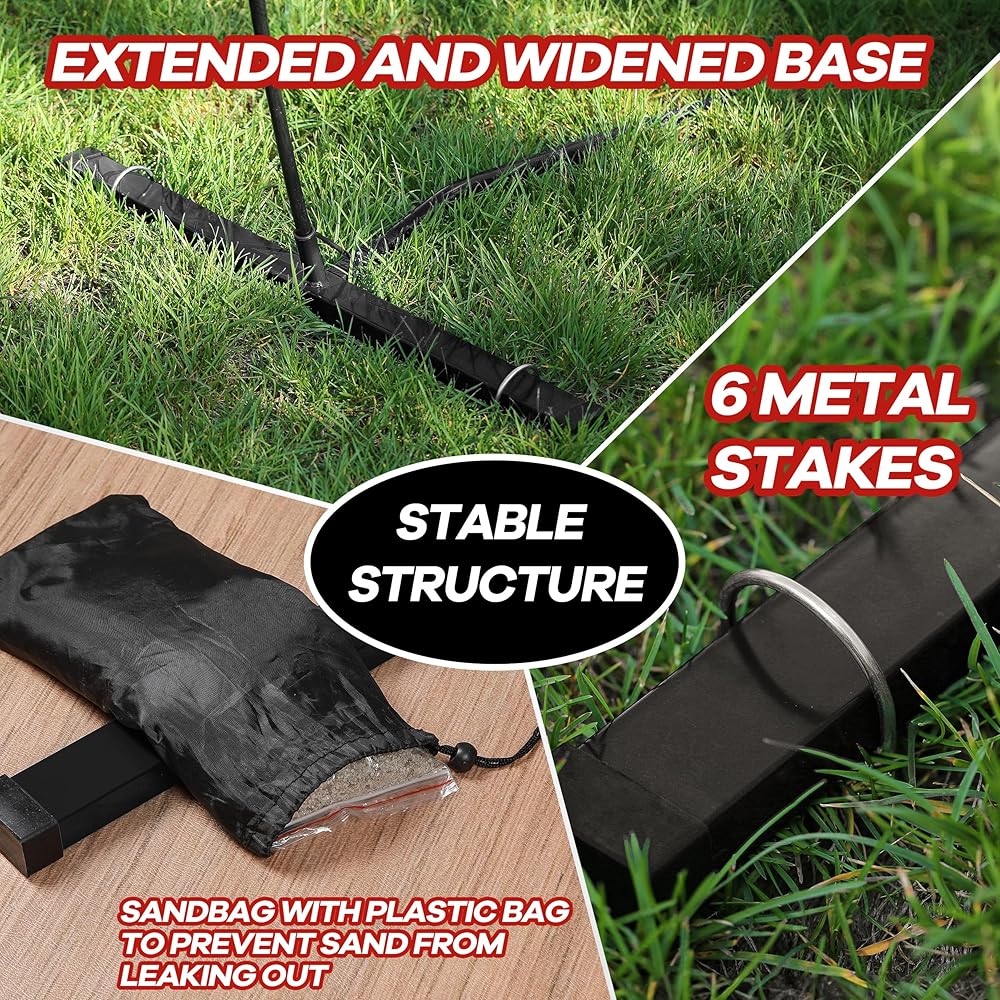 • 𝐂𝐨𝐦𝐩𝐞𝐭𝐢𝐭𝐢𝐯𝐞𝐥𝐲 𝐒𝐭𝐚𝐛𝐥𝐞 𝐒𝐭𝐫𝐮𝐜𝐭𝐮𝐫𝐞: مدعومًا بعملية طلاء مسحوق الرش، الهيكل الشبكي مصنوع من أنبوب فولاذي مضاد للصدأ، مع أنبوب مربع طويل وسميك. يمكن أن تتحمل الرياح القوية المجنونة. ومجهزة بأوتاد أرضية على شكل "J" للأراضي العشبية وأكياس الرمل مع كيس بلاستيكي مغلق، يمكن أن يكون الهيكل مستقرًا بالتأكيد للعديد من أنواع متطلبات التدريب.