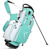 【مقبض محمول وحامل مانع للانزلاق】: مقبض محمول ومريح يساعدك على نقل نوادي الجولف الخاصة بك بسهولة. أرجل حامل سهلة التحرير لضمان بقاء حقيبة الجولف ثابتة عند استخدامها في تضاريس مختلفة
