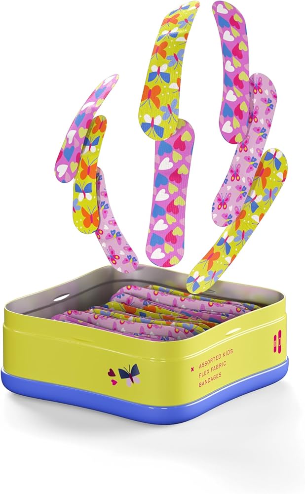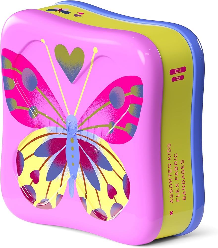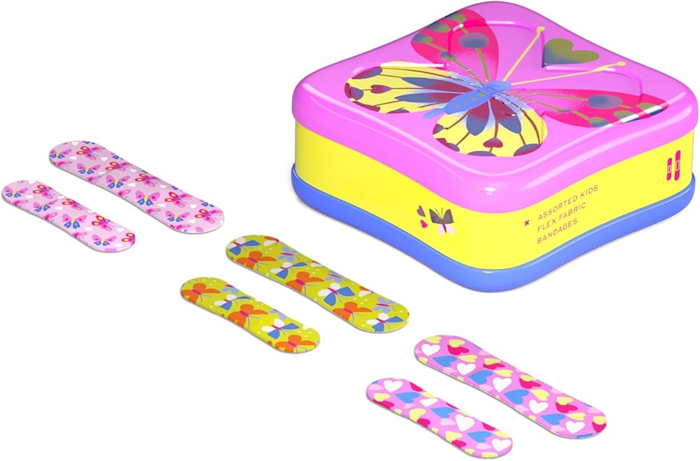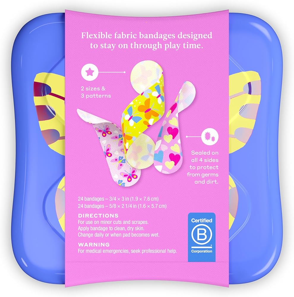 ضمادات ويلي | شارات شجاعة من القماش المرن اللاصق | أشكال متنوعة للجروح البسيطة والخدوش والجروح | علبة إسعافات أولية ملونة وممتعة | أنماط الفراشة - عدد 48