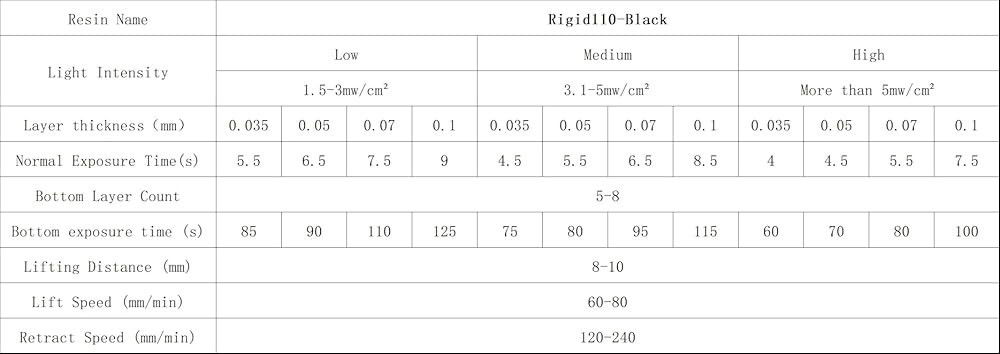 【قوة وصلابة فائقة】استنادًا إلى الراتنج Rigid100، يعزز الراتنج Rigid110 القوة والصلابة مع الحفاظ على المتانة. لذلك يمكن للنموذج المطبوع أن يتحمل السقوط العرضي أحيانًا دون أن ينكسر بسهولة.