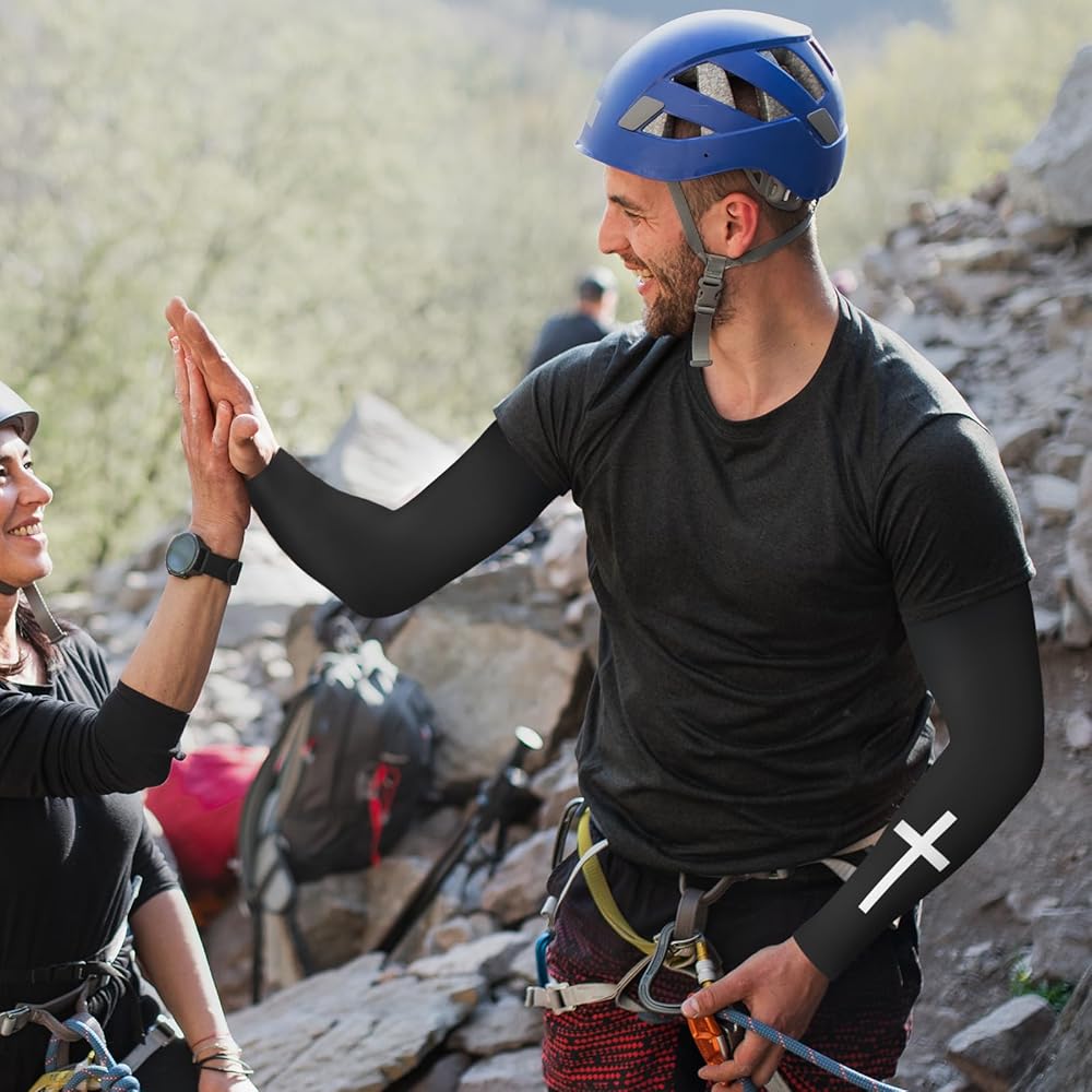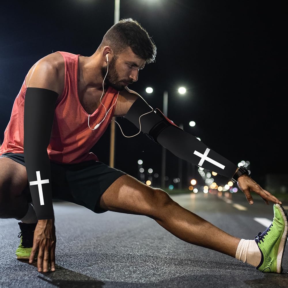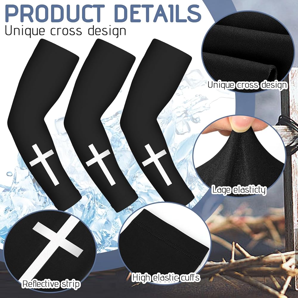 أكمام ذراع مسيحية: سوف تحصل على 6 أزواج من أكمام الذراع للرجال بثلاثة ألوان، زوجين من كل لون، رمادي غامق، رمادي فاتح، أسود، الكمية والنمط كافية لاحتياجاتك اليومية