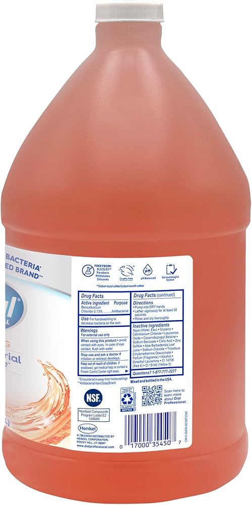 Dial® Professional Antibacterial Defense™ Spring Water® Foaming Hand Wash contains aloe vera and kills more than 99.99% of bacteria encountered in away-from-home settings, while being gentle on skin, leaving it feeling soft, smooth, & healthy. The #1 Doctor Recommended Antibacterial Hand Soap Brand is dermatologist-tested & approved as cruelty-free under the Leaping Bunny Program.