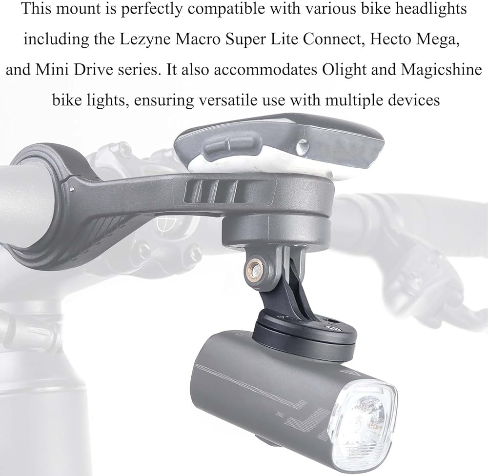 Wide Compatibility:This mount is perfectly compatible with various bike headlights, including the Lezyne Macro Super Lite Connect, Hecto Mega, and Mini Drive series. It also accommodates Olight and Magicshine bike lights, ensuring versatile use with multiple devices