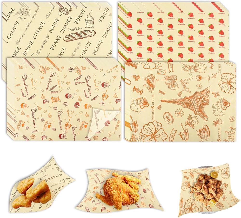 Deli Paper Sheets - When you don't want to be stained by the oil slick of fried food, our food wax paper will be your best choice, use it, so that you no longer need to worry and enjoy the food happily. Usage - Whether it's a picnic or a fast food, these food wrapping paper will always be your best helper. Because not only the oil repellent characteristics are good, but the decorative effect is also very good, there are four colors of red, purple, yellow, green to meet your diverse needs, it is very worth your purchase.