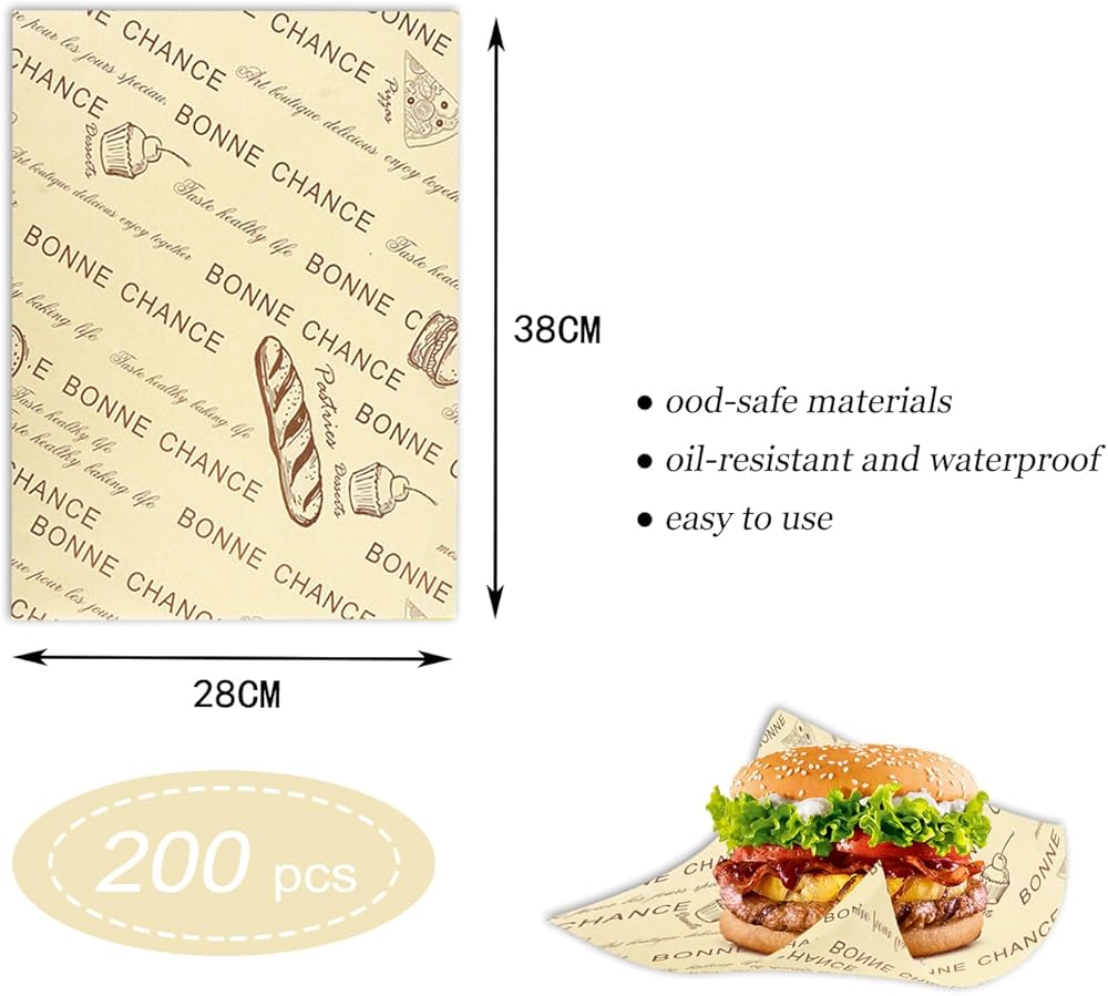 Size - 15 x 11 inches, total 200 Sheets,these food wax tablets are perfect for packing burgers, sandwiches, bread, cakes, and can also be used as a liner for baskets and trays.