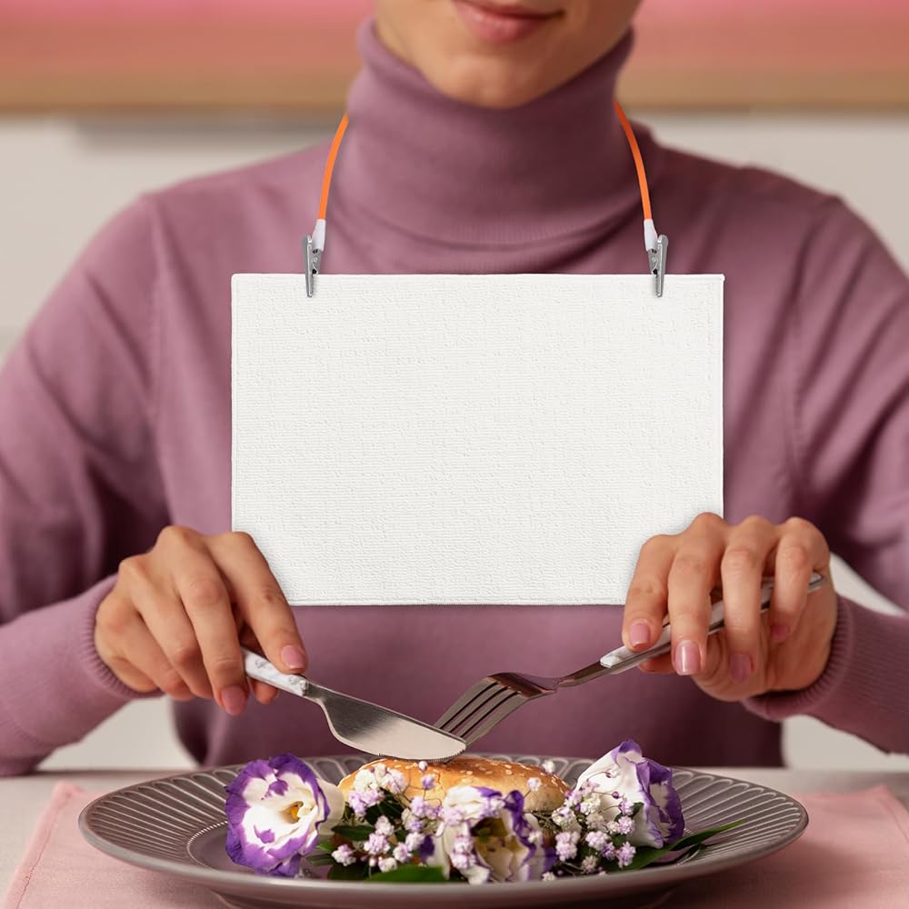 • 【Portable】Bib holder is not only small in size, but also extremely light in weight and easy to carry. Each napkin clip is 45cm/17.72in long and the clip is 3.5cm/1.38in wide. The size is moderate, which does not take up too much space and can effectively meet various usage needs. You can easily put it in your bag or pocket and use it anytime, anywhere without adding any burden, which greatly improves the convenience in daily life