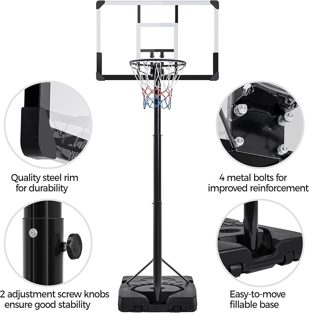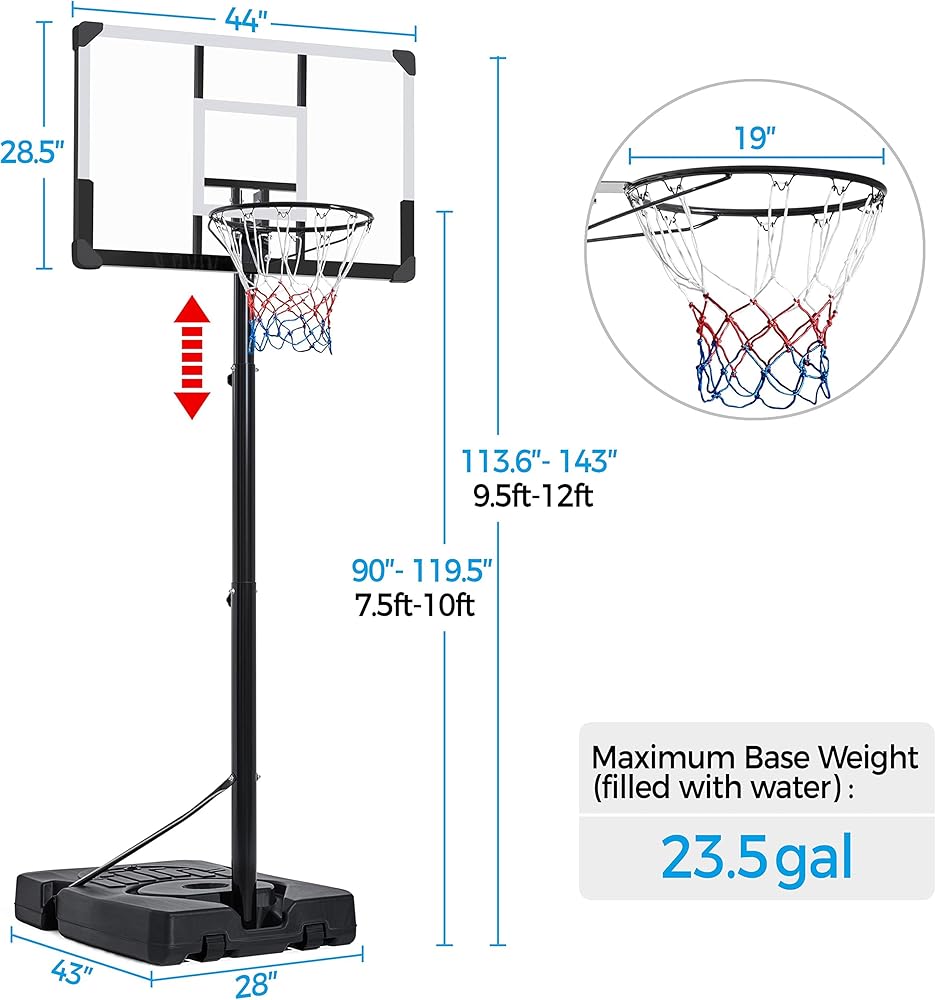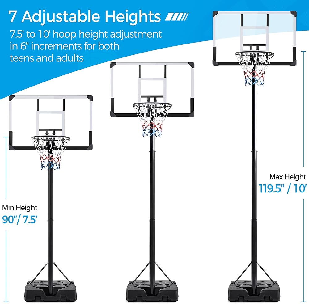 ارتفاع قابل للتعديل للمراهقين والبالغين: مع العمود التليسكوبي، يمكنك بسهولة ضبط حافة طوق كرة السلة المحمول هذا من ارتفاع تنظيمي من 7.5 قدم إلى 10 أقدام ليناسب اللاعبين الصغار والكبار في أي مستوى من المهارة.