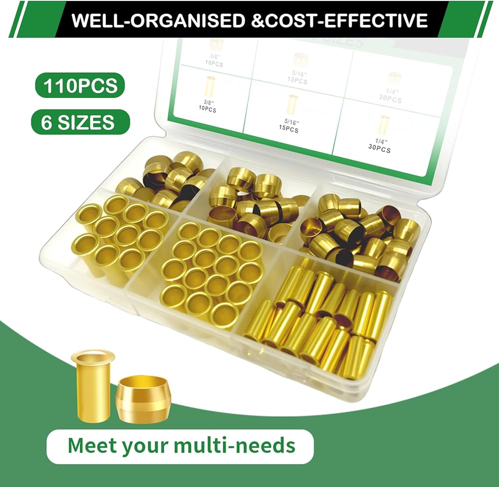 110 قطعة من الحلقات ذات الأكمام المضغوطة من النحاس